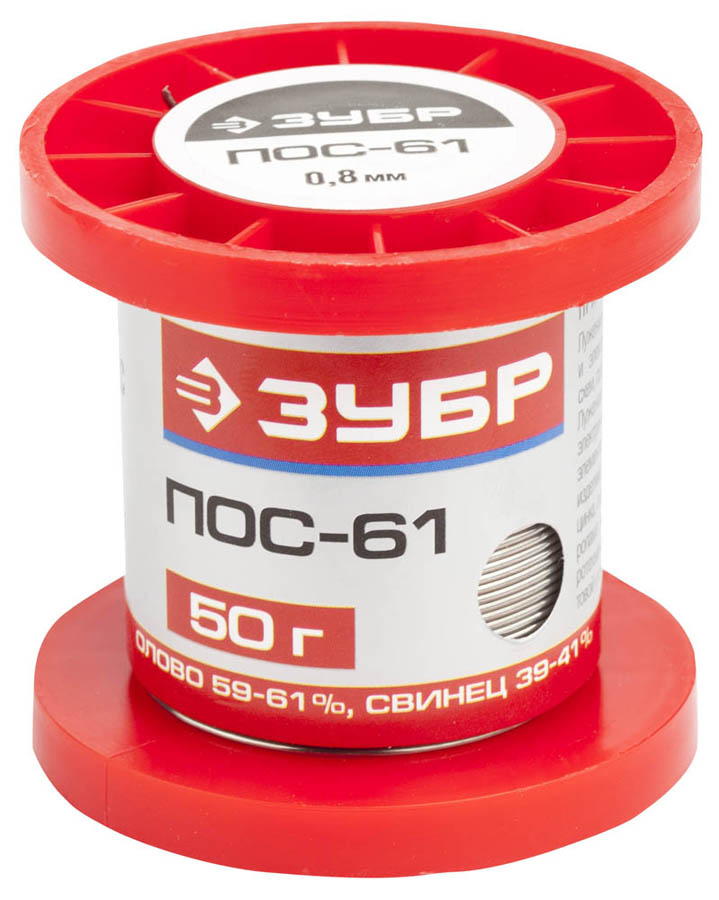 Припой ЗУБР, ПОС 61, проволока, 50г, 0,8мм