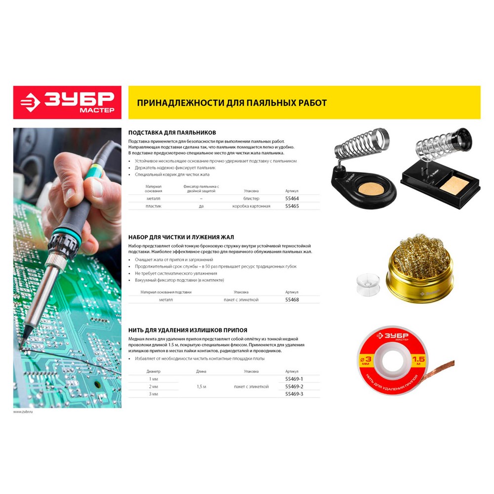 Нить для удаления излишков припоя ЗУБР 55469-1 применяется для удаления излишков припоя в местах пайки контактов, радиодеталей и проводников.