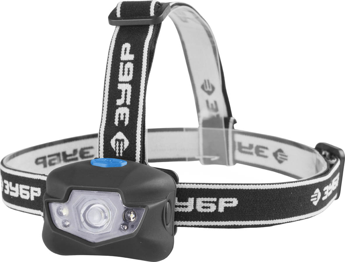 Фонарь ЗУБР "ЭКСПЕРТ" налобный светодиодный, 3Вт(120Лм)+4LED, линза коллиматор, 3 режима, 3ААА