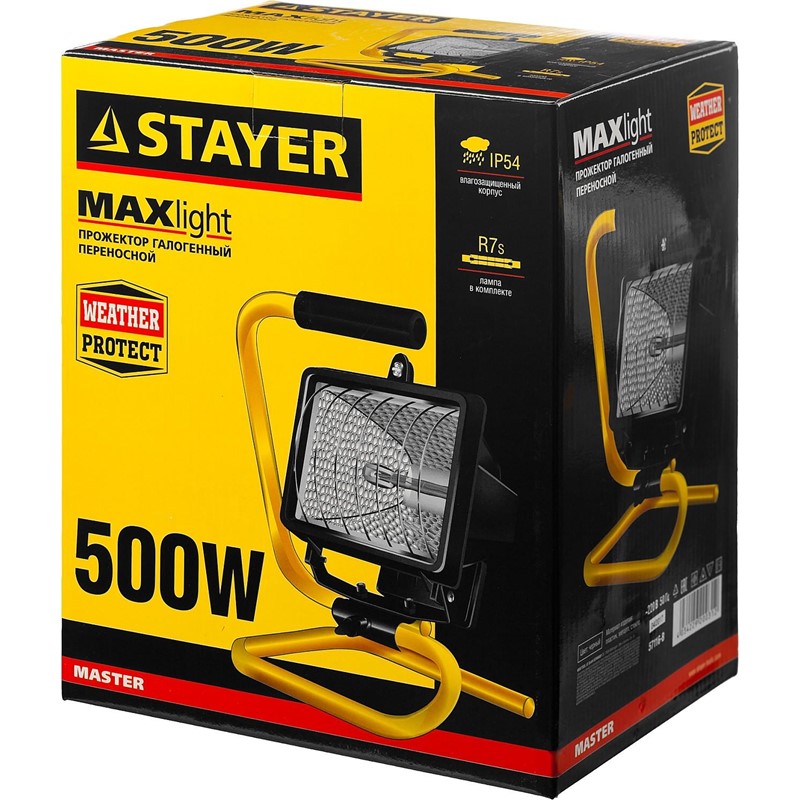 STAYER MAXLight прожектор 500Вт галогенный, переносной с подставкой, черный