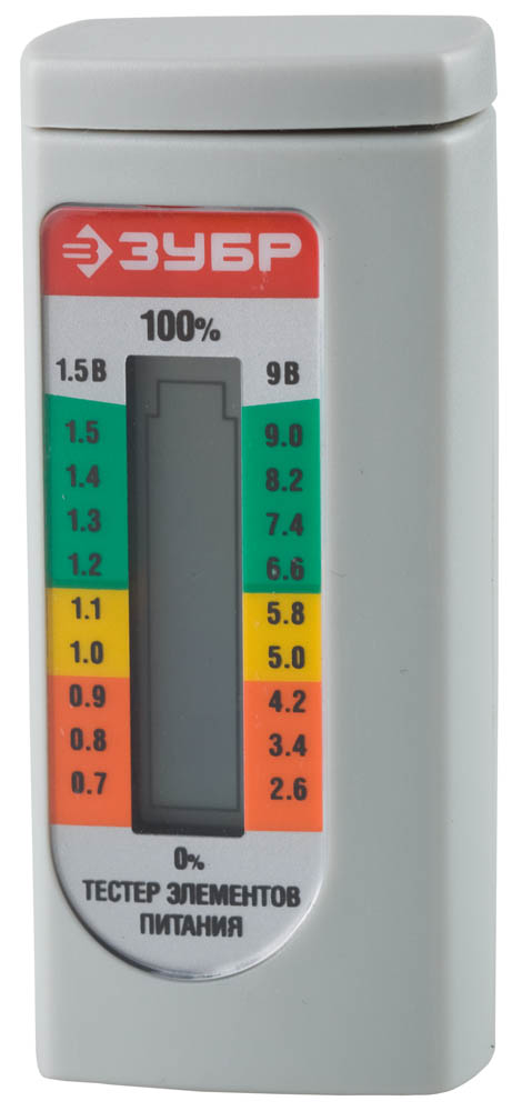 Тестер уровня заряда батарей ЗУБР для элементов питания ААА, АА, С, D, LR44, 6LR61(корунд)