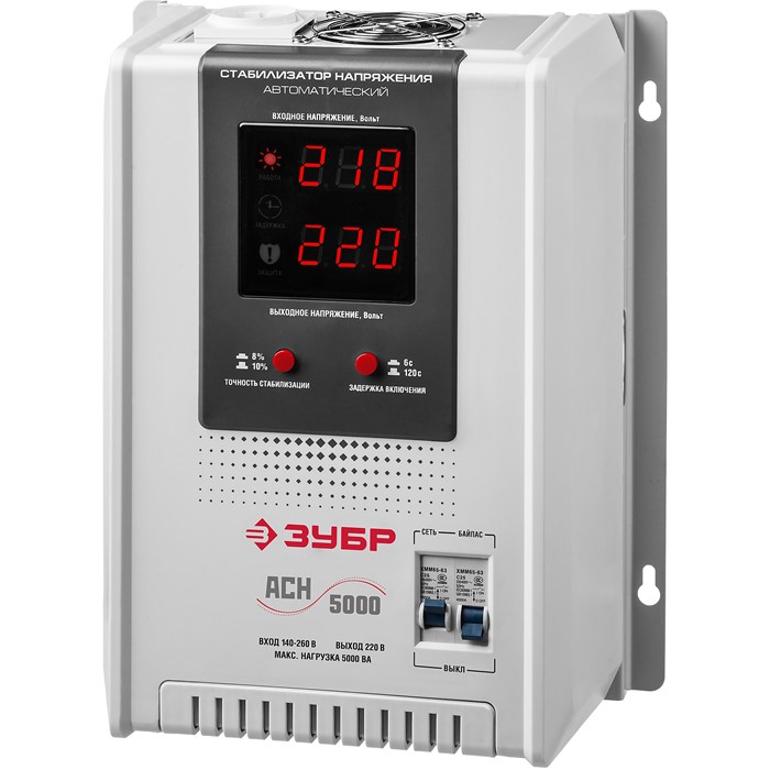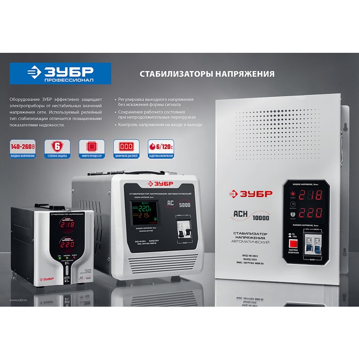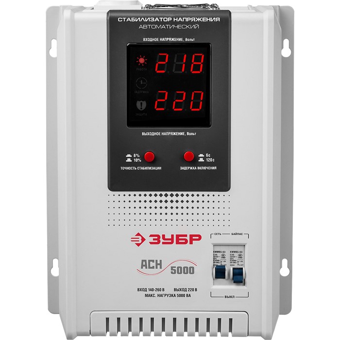Стабилизаторы напряжения ЗУБР предназначены для точного и быстрого выравнивания сетевого напряжения для защиты бытовой техники и оборудования. Устройство обеспечивает эффективную защиту электроприборов от нестабильного по значению напряжения в сети. Релейный тип стабилизации является одним из наиболее надежных. Светодиодная индикация и цифровой дисплей позволяют контролировать состояние устройства и величину выходного напряжения.