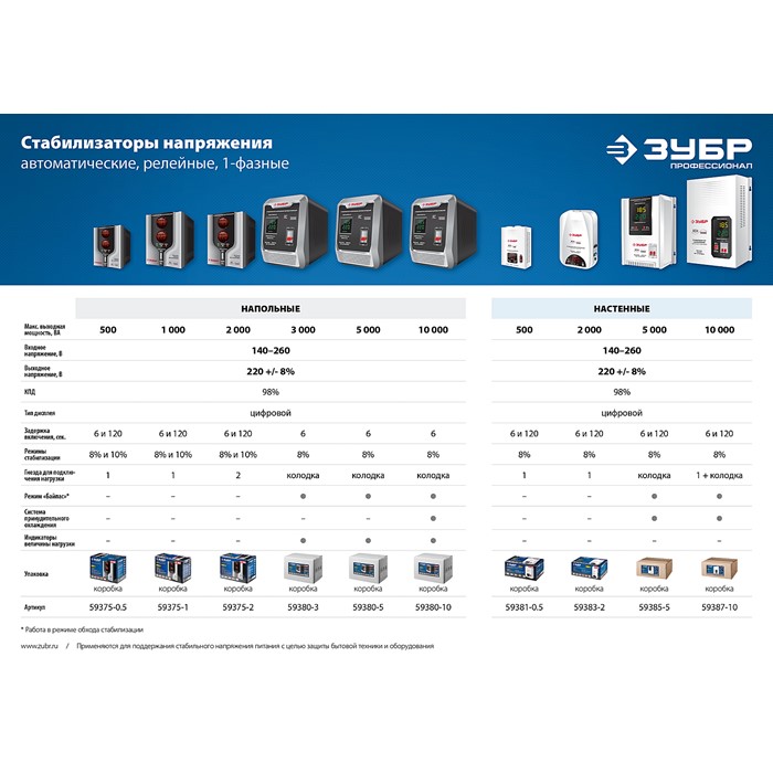 Стабилизаторы напряжения, навесные 59385-5 Зубр