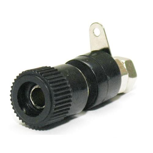 Гнездо (розетка) 602-black внутренним диаметром 4 мм, с гаечным соединением и контактным лепестком, длина изолированной части 20 мм, общая длина 32 мм, цвет черный.