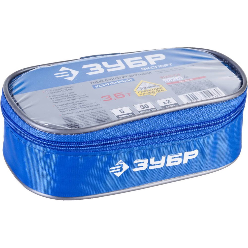 Трос буксировочный ЗУБР "ЭКСПЕРТ", 2 крюка, сумка, 5м, 3,5т