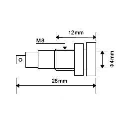 Гнездо (розетка) 641-black с внутренним диаметром 4 мм, с ножевым соединением с контактным отверстием диаметром 2 мм. Гаечное крепление с шайбой, общая длина 28 мм. Цвет черный.