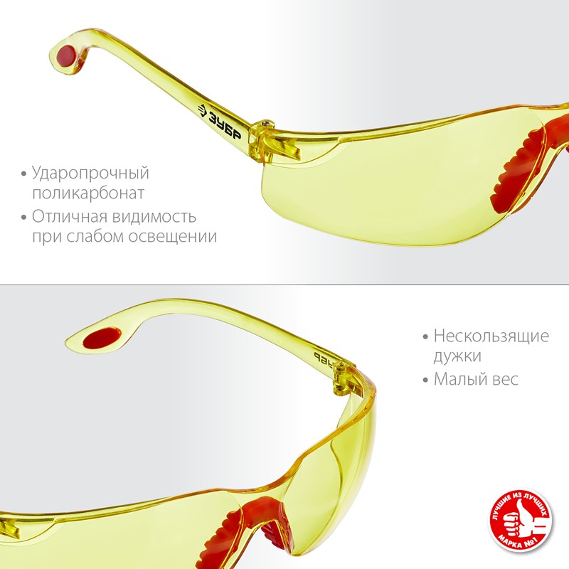 Защитные жёлтые очки ЗУБР СПЕКТР 3 широкая монолинза, открытого типа