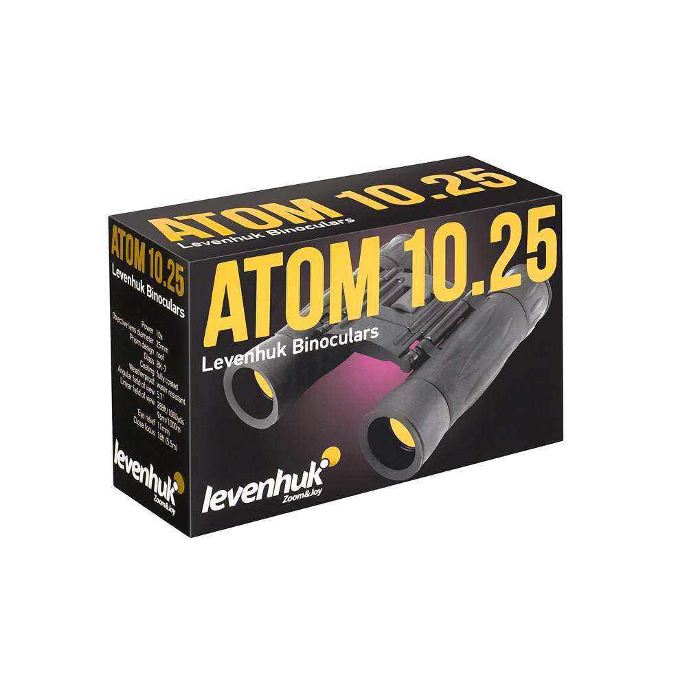 Бинокль Levenhuk Atom 10x25 Ремешок Салфетка для ухода за оптикой Чехол Инструкция по эксплуатации и гарантийный талонТехнические характеристики
