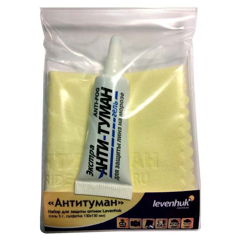 Набор для защиты оптики Levenhuk «Антитуман» предназначен для ухода за оптической техникой и очками в условиях повышенной влажности и при резких перепадах температур. Levenhuk «Антитуман» эффективно предотвращает запотевание оптики. Набор состоит из геля и салфетки. В неблагоприятных погодных условиях на линзах оптических приборов и очков образуется конденсат. Levenhuk «Антитуман» надежно защищает линзы от запотевания. Чтобы обработать оптические поверхности, следует выдавить немного геля на линзу, а затем вытереть ее салфеткой до сухого состояния. При использовании набора Levenhuk «Антитуман» на поверхности линзы образуется тонкая защитная пленка. Этот химический состав мгновенно реагирует на появление конденсата, испаряя влагу в воздух. Линза остается чистой и сухой. Набор Levenhuk «Антитуман» прекрасно подходит для ухода за линзами с многослойным просветляющим покрытием. Гель расходуется очень экономично, поэтому 5-граммовой упаковки хватит надолго. Каждая сторона салфетки может быть использована не менее 60 раз.