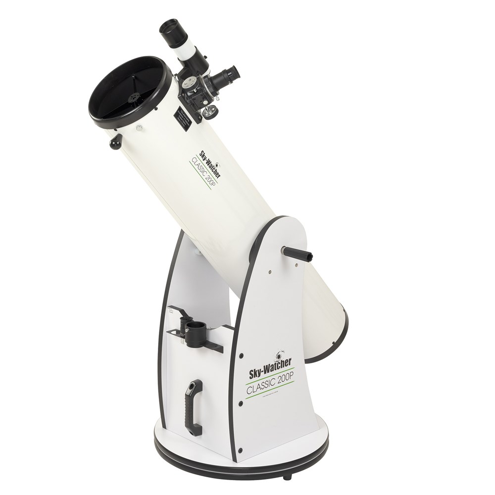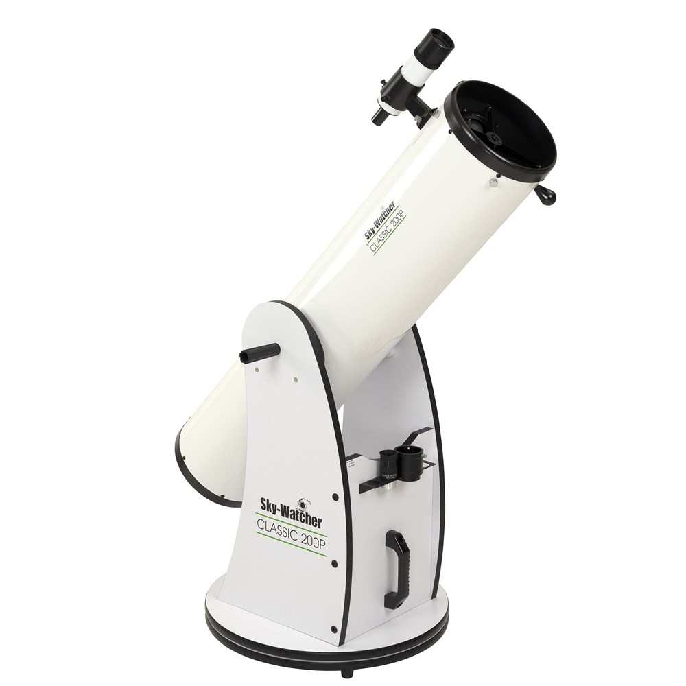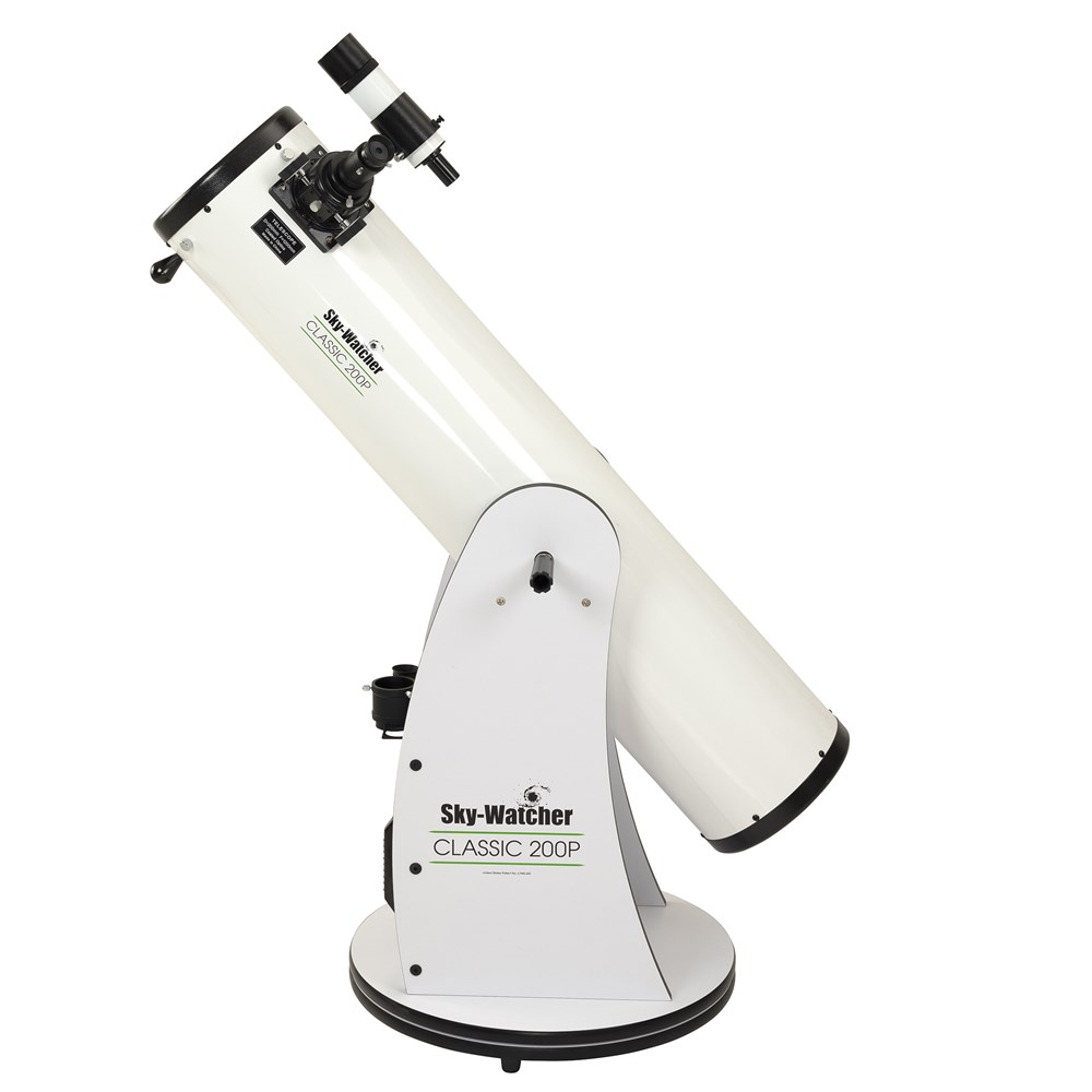 Рефлектор Ньютона. Диаметр главного зеркала: 203 мм. Фокусное расстояние: 1200 мм. Телескоп Sky-Watcher Dob 8" 200/1200 – это рефлектор, установленный на азимутальную монтировку Добсона. Эта модель идеальна для изучения объектов дальнего космоса: туманностей, галактик, звездных скоплений, комет, астероидов и других небесных тел. Телескоп обеспечивает передачу картинки высокого качества, особенно при загородных наблюдениях. Оптика Sky-Watcher Dob 8" Главное зеркало изготовлено из боросиликатного стекла марки Pyrex. Благодаря низкому коэффициенту теплового расширения зеркало сохраняет свою форму даже при резких перепадах температур. Вторичное зеркало Sky-Watcher Dob 8" 200/1200 крепится при помощи сверхтонких растяжек, не вносящих искажений в изображение. Для настройки резкости используется высокоточный фокусер Крейфорда с посадочным диаметром 2". В комплект входит переходник на 1,25", а также два окуляра. Монтировка телескопа Sky-Watcher Dob 8" Монтировка Добсона ставится на землю и обеспечивает максимально устойчивое положение телескопа. Монтировка очень проста в сборке и управлении, поэтому с ней легко справится даже начинающий астроном. Sky-Watcher Dob 8" купить стоит в том случае, если у вас есть возможность вести наблюдения за городом. Рефлекторы не любят городской засветки и лучший результат показывают вне городской черты. К тому же из-за монтировки Добсона телескоп достаточно габаритный, использовать его для наблюдений с балкона или лоджии сильно затруднительно.