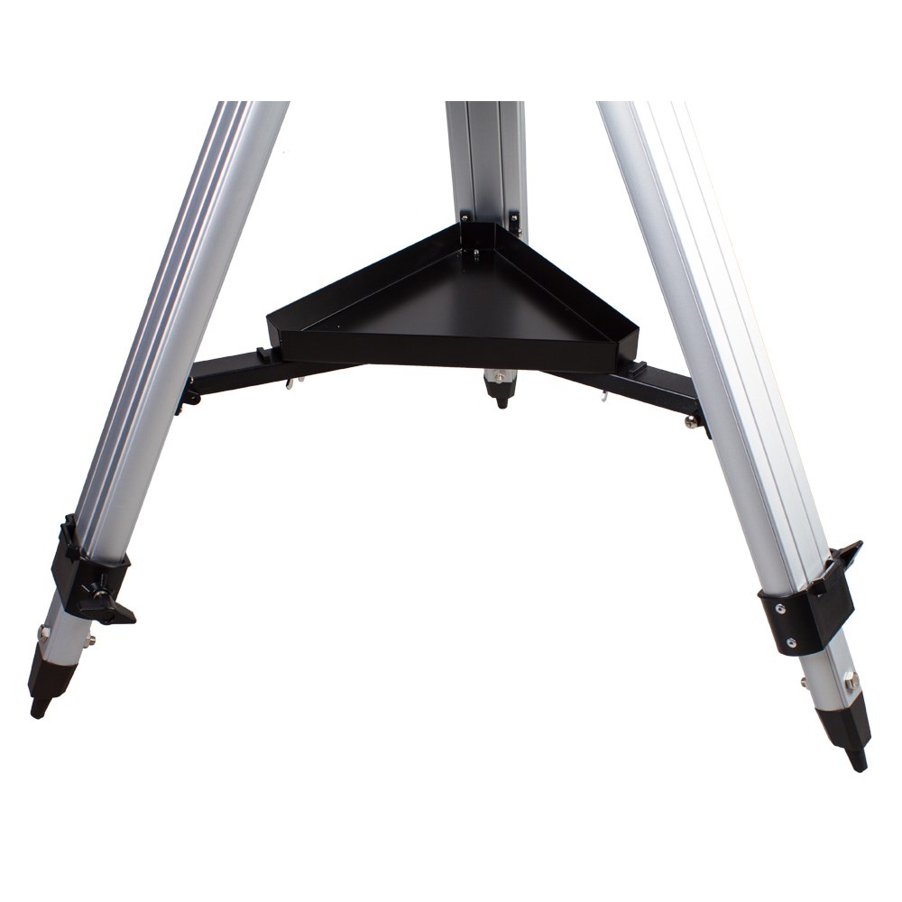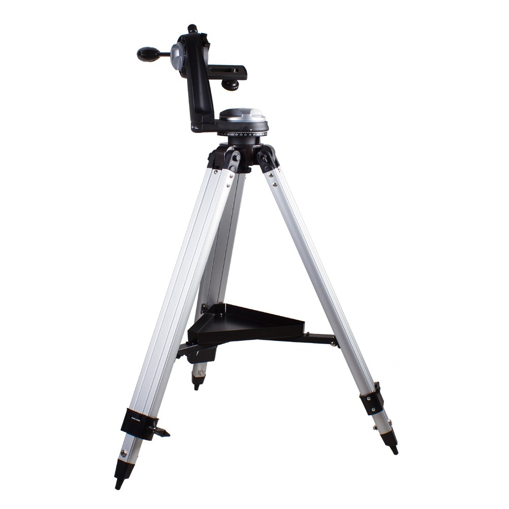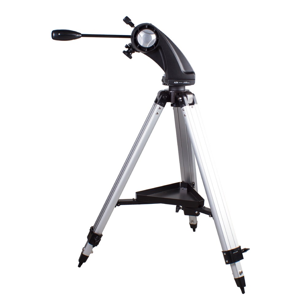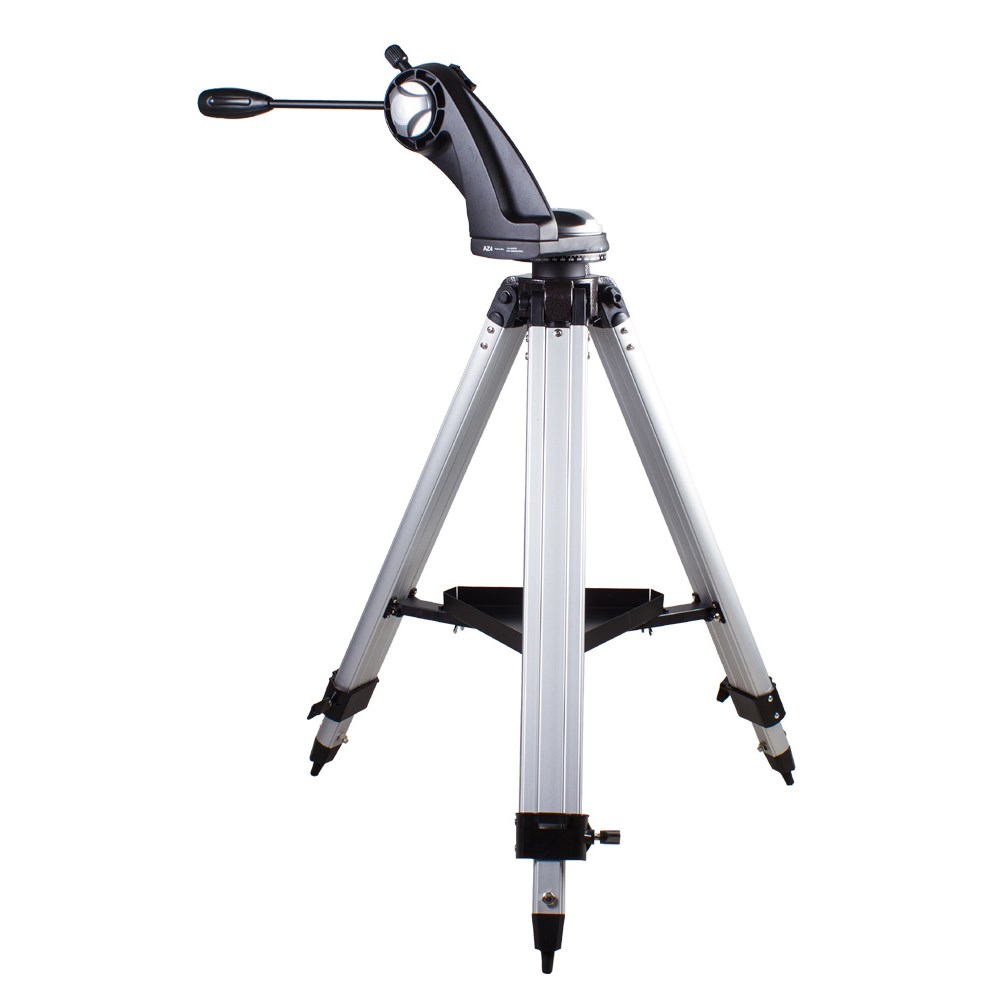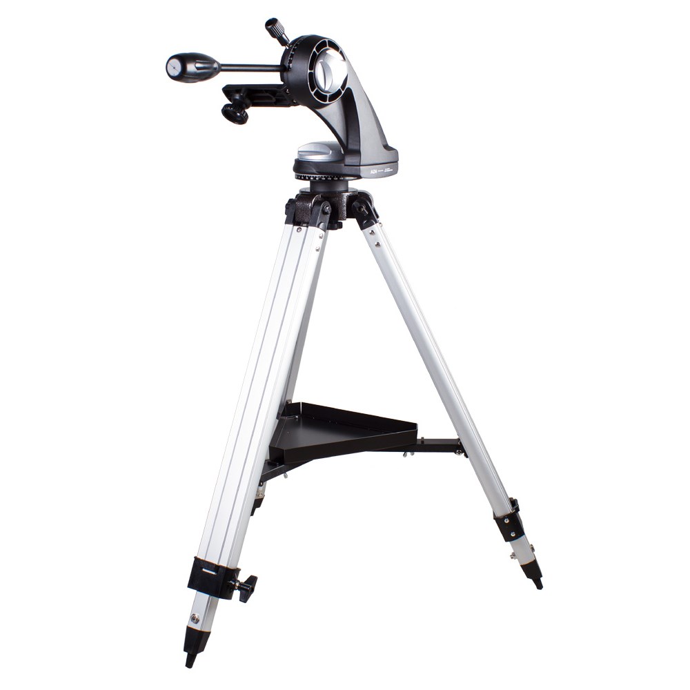 Азимутальная полувилочная монтировка. Полувилочная азимутальная монтировка Sky-Watcher AZ4 предназначена для визуальных наблюдений. Простое управление и удобная конструкция делают эту монтировку оптимальным выбором для начинающих астрономов. Данная модель имеет небольшой вес. Надежная механика позволяет перемещать трубу плавно, без рывков. Монтировка снабжена специальным механизмом, регулирующим сопротивление в осях при повороте телескопа. Для установки оптической трубы используется стандартное крепление «ласточкин хвост». Прочная и легкая алюминиевая тренога позволяет добиться устойчивого положения телескопа. Высота ножек регулируется. Чтобы все необходимое для наблюдений было под рукой, тренога снабжена лотком для аксессуаров.