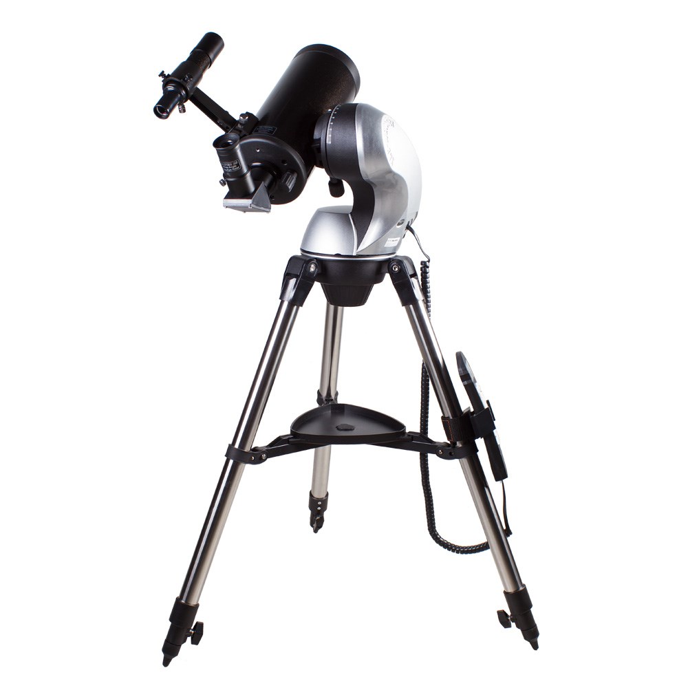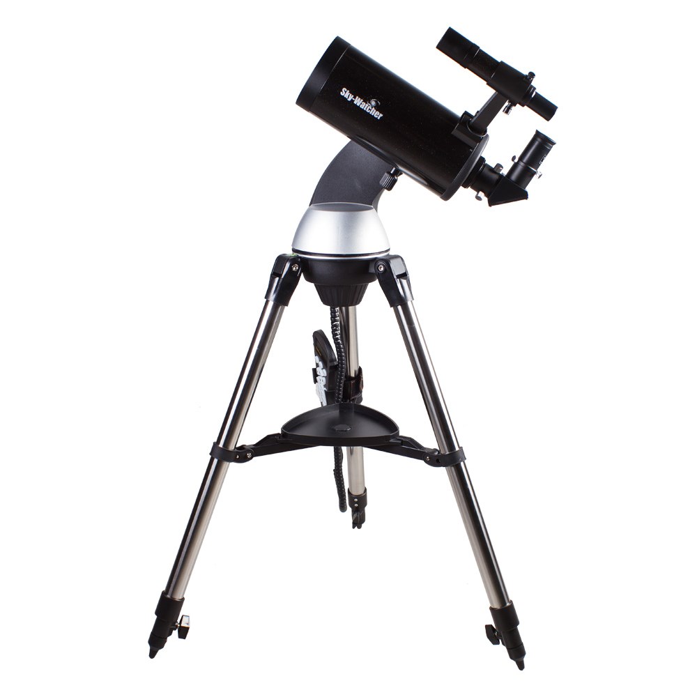Зеркально-линзовый телескоп. Диаметр объектива: 102 мм. Фокусное расстояние: 1300 мм. Небольшой зеркально-линзовый телескоп Sky-Watcher MAK BK MAK102AZGT SynScan GOTO подойдет как опытным пользователям, так и начинающим любителям астрономии. Благодаря системе автонаведения поиск объектов осуществляется быстро и просто. Оптическая труба собрана по схеме Максутова-Кассегрена. В комплект входят окуляры 20 мм и 10 мм. Начинать наблюдения рекомендуется с окуляра 20 мм, поскольку он имеет широкое поле зрения и обеспечивает хороший обзор ночного неба. Труба устанавливается на азимутальную монтировку с системой автоматического наведения. База данных содержит координаты 42 900 астрономических объектов. Для управления монтировкой используется пульт. Стальная тренога обеспечивает стабильное положение телескопа.
