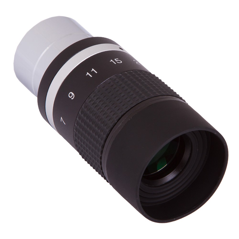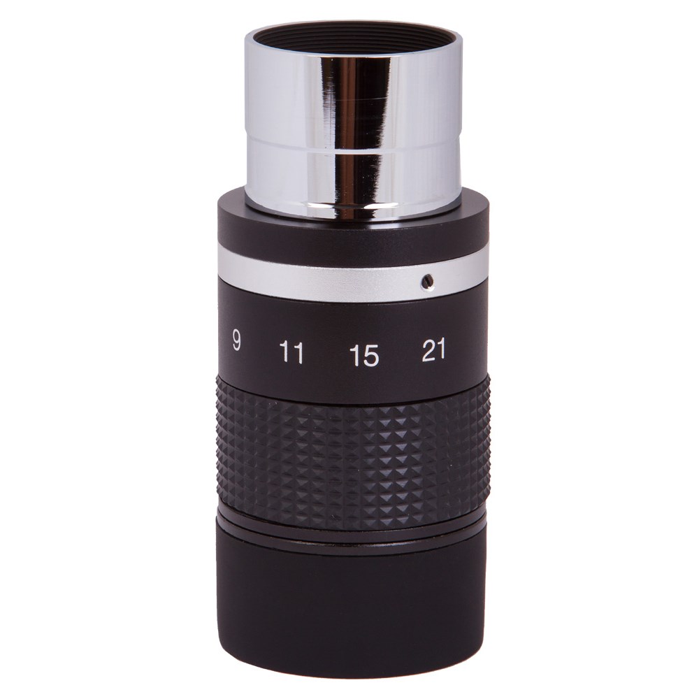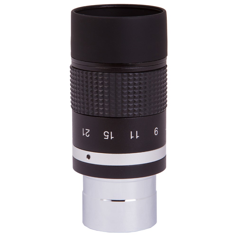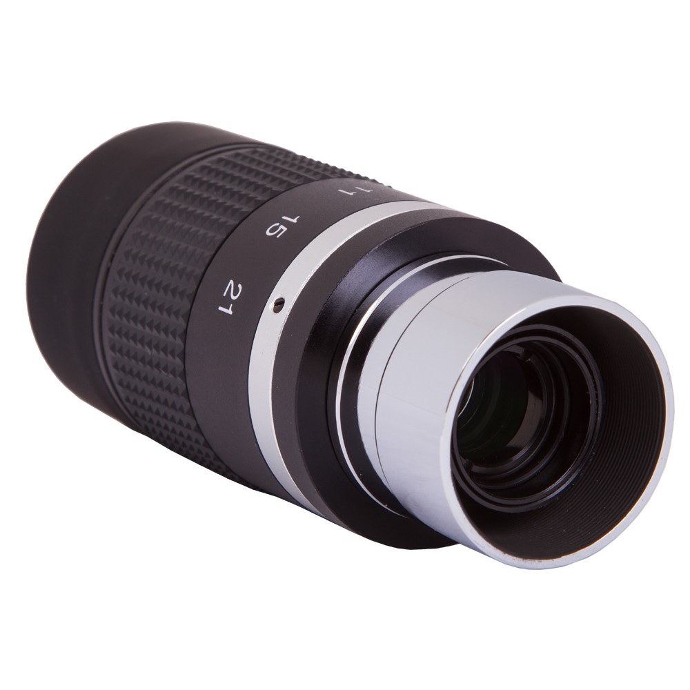 Зум-окуляр. Окуляр Sky-Watcher Zoom 7–21 мм – это простой способ расширить диапазон увеличений телескопа. Данная модель имеет переменное фокусное расстояние, благодаря чему способна заменить собой несколько окуляров. Продуманная конструкция обеспечивает стабильную фокусировку при смене кратности. Специальная шкала на корпусе окуляра позволяет контролировать выбор фокусного расстояния.