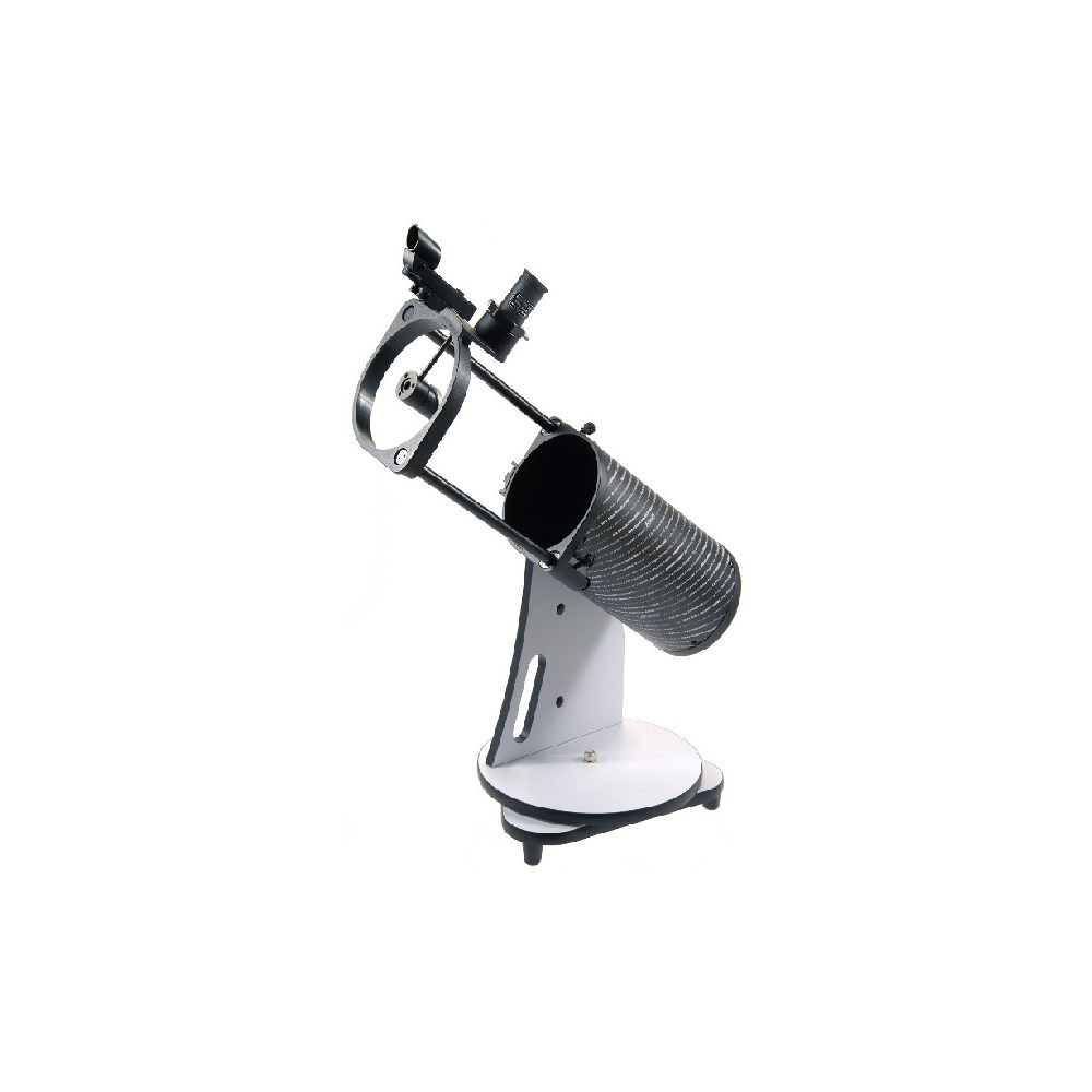 Рефлектор Ньютона Sky-Watcher Dob 130/650 Heritage Retractable прекрасно подойдет для изучения Луны, планет Солнечной системы и объектов дальнего космоса. С его помощью вы увидите фазы Венеры и Меркурия, кольца Сатурна и спутники Юпитера, Уран и Нептун в виде дисков, множество тусклых комет и астероидов, наиболее яркие спиральные галактики и многое другое. Благодаря складной конструкции телескоп удобно брать с собой, чтобы полюбоваться ночным небом вдали от города. Оптическая труба устанавливается на монтировку Добсона – она проста в управлении и подойдет даже начинающему любителю астрономии. Главное зеркало параболическое, поэтому все падающие на него лучи света собираются в одной точке. Изображение при этом получается четким и неискаженным, без хроматических аберраций. И главное, и вторичное зеркала покрыты специальным составом, повышающим коэффициент отражения. Телескоп можно использовать в городе, однако максимум своих возможностей он продемонстрирует при наблюдениях вдали от городской засветки. Труба складная, так что телескоп удобно хранить и перевозить. Азимутальная монтировка Добсона позволяет перемещать трубу по высоте и азимуту. Монтировка очень проста в сборке и управлении.