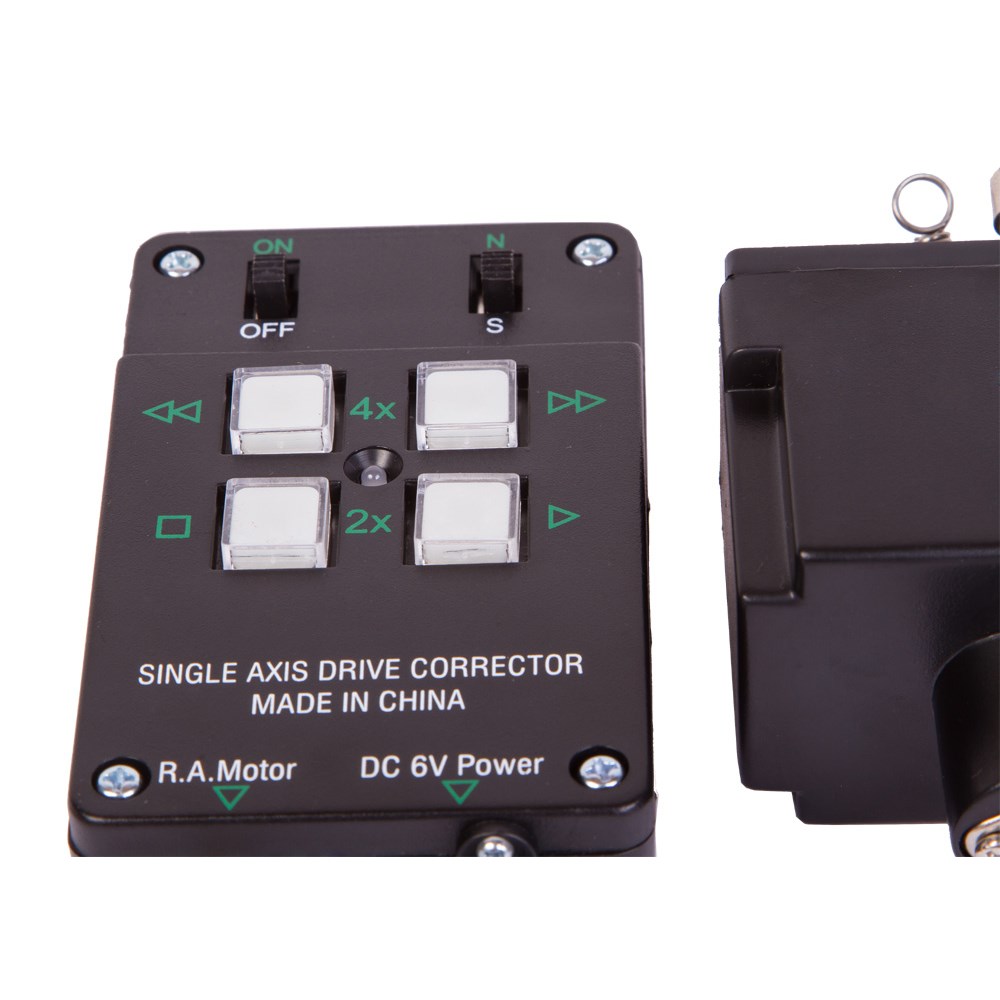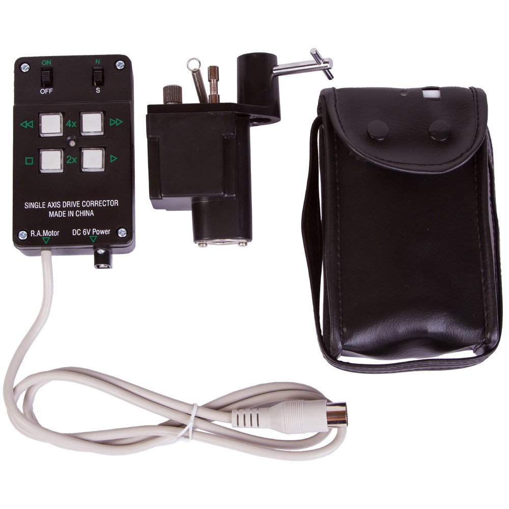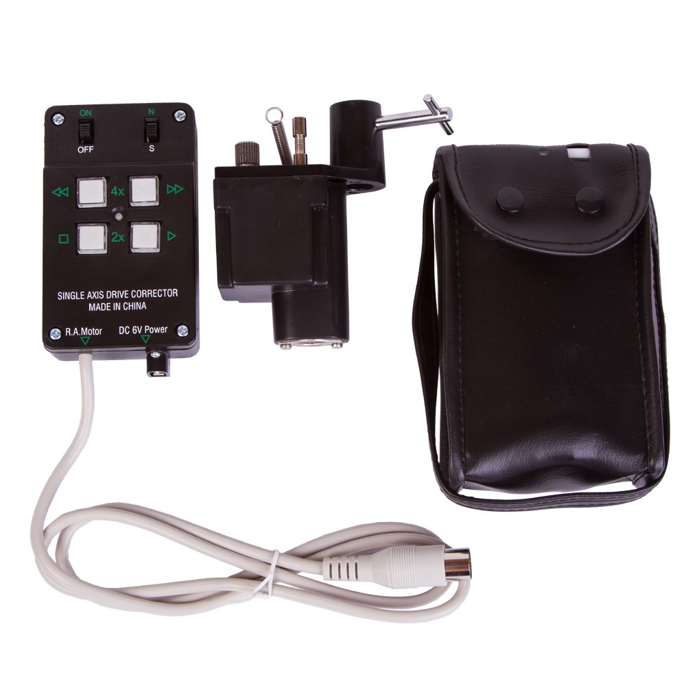 Электропривод Sky-Watcher позволит быстро и просто усовершенствовать экваториальную монтировку EQ2. Устройство устанавливается на часовую ось и гарантирует ровное, плавное и точное перемещение трубы в процессе наблюдений или астрофотосъемки. Удобный пульт позволяет менять скорость движения – 2x или 8x. В комплект также входит батарейный блок на 4 батарейки типа D (сами батарейки приобретаются отдельно).