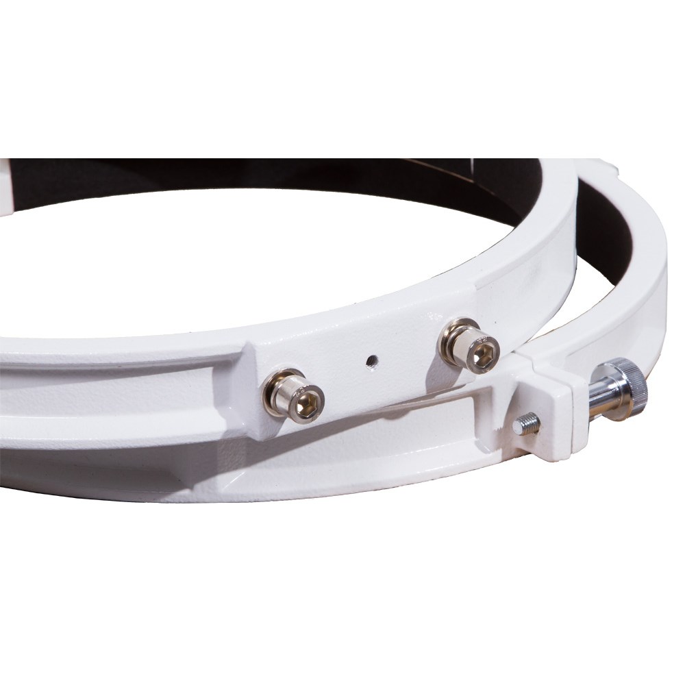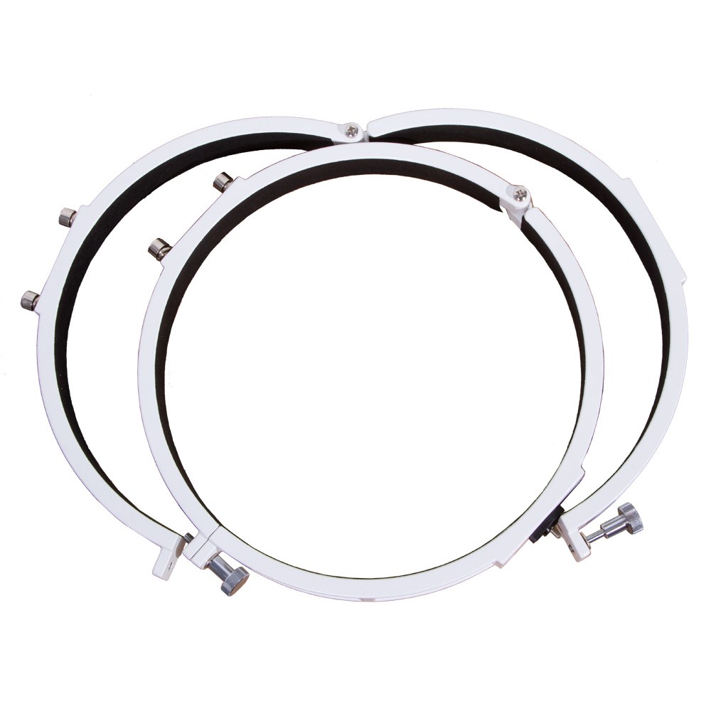 С помощью крепежных колец Sky-Watcher легко установить оптическую трубу на монтировку. Кольца предназначены для зеркальных телескопов с апертурой 300 мм. Эту модель можно использовать с экваториальными монтировками EQ1, EQ2, EQ3-2, EQ4, EQ5, HEQ5, EQ6 и с азимутальной монтировкой AZ3. Кольца изготовлены из прочного алюминия. Винты надежно фиксируют трубу в кольцах.