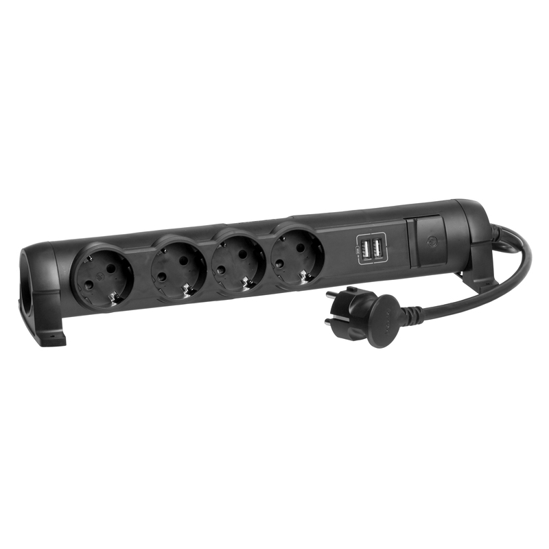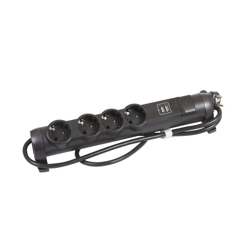 Legrand Блок многорозеточный с 2хUSB+4x2К+З с кабелем длиной 1,5 м черный