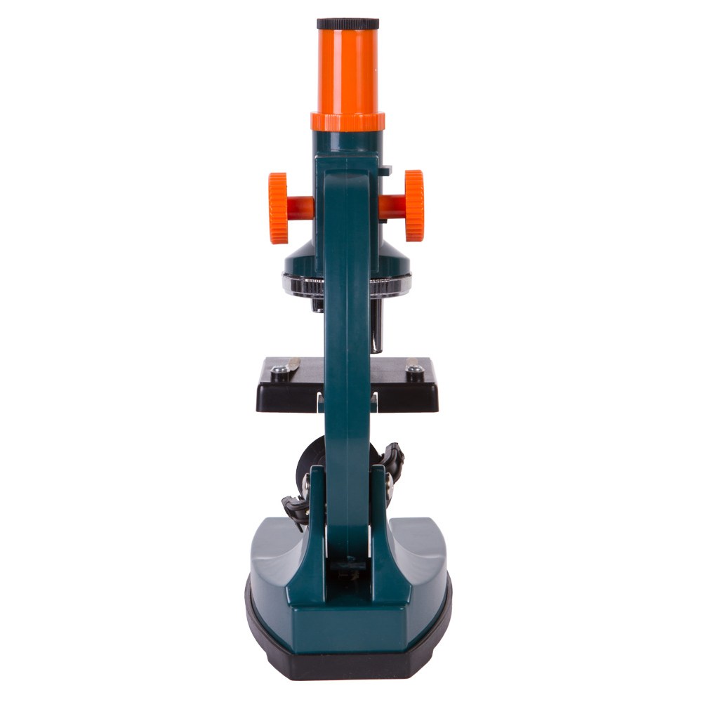 Корпус микроскопа изготовлен из пластика. Он легкий, но прочный. Ребенок сможет брать микроскоп с собой в дорогу или гости. Предметный столик снабжен удобными зажимами, которые позволяют надежно зафиксировать микропрепарат под объективом. Фокусировка грубая, настройка резкости происходит путем вращения ручки настройки.