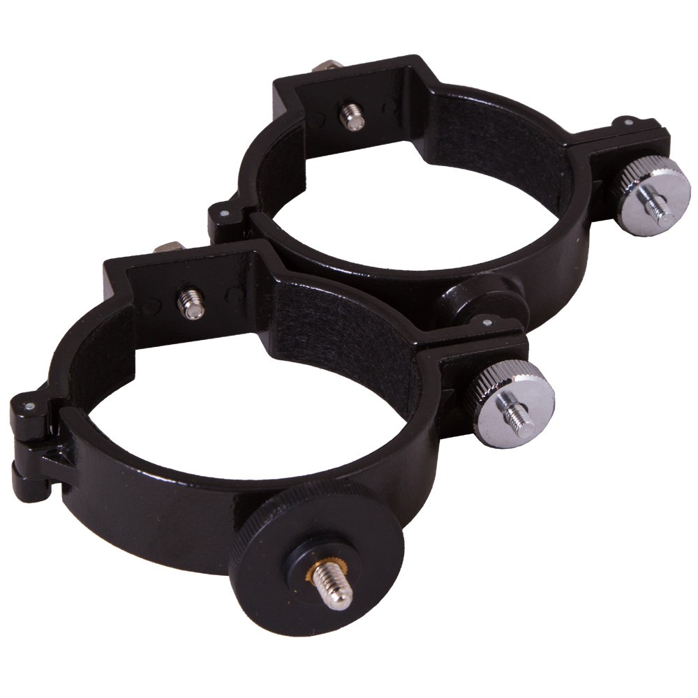 Крепежные кольца Sky-Watcher позволяют установить на монтировку оптическую трубу телескопа. Эта модель подходит для рефракторов с апертурой 70 мм. Трубу можно будет установить на любую экваториальную монтировку Sky-Watcher или азимутальную монтировку Sky-Watcher AZ3. Кольца стягиваются при помощи специальных винтов, изготовлены из литого алюминия и позволяют надежно фиксировать трубу на монтировке. На одном кольце есть крепление 1/4'' для установки фотокамеры.
