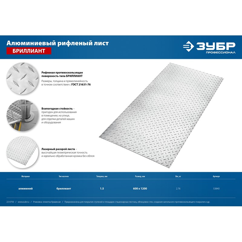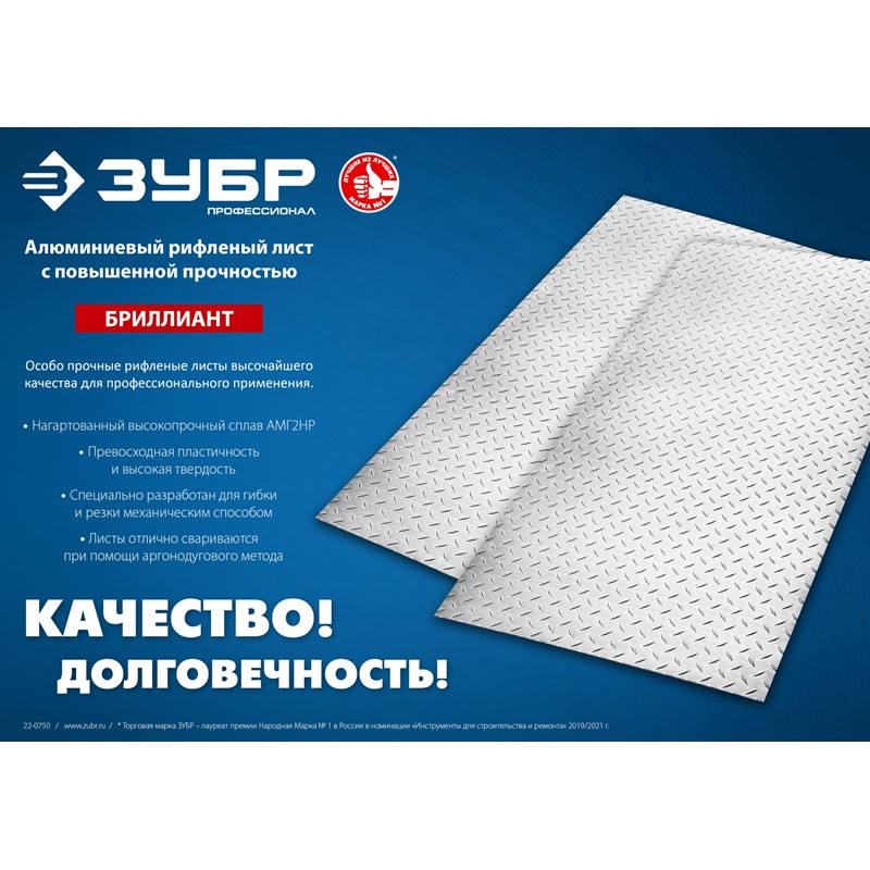 Алюминиевый рифленый лист ЗУБР Бриллиант 600х1200 х1.5 мм