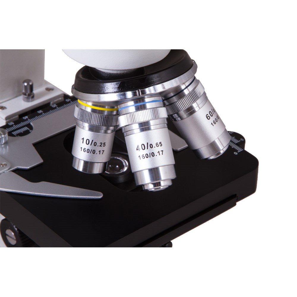 Микроскоп Bresser Erudit DLX 40–600x станет отличным выбором для ученика старших классов или человека, интересующегося микробиологией. Он дает увеличение в диапазоне от 40 до 600 крат, комплектуется ахроматическими объективами, прекрасно подходит для изучения любых прозрачных объектов. В микроскоп можно изучать готовые микропрепараты и тонкие срезы, сделанные самостоятельно. В микроскопе используется монокулярная насадка. Ее можно вращать на 360°. Благодаря этому Bresser Erudit DLX 40–600x удобен при групповых исследованиях и хорошо подходит для выполнения лабораторных работ в школах и институтах. Револьверное устройство рассчитано на 4 объектива, в комплект включены объективы стандарта DIN с увеличением 4х, 10х, 40х и 60х. Благодаря ахроматическим линзам они передают четкую и детализированную картинку без оптических искажений, исправляют кривизну поля. На предметный столик нанесена школа нониуса, которая используется при измерении образцов. Микропрепараты можно перемещать при помощи препаратоводителя. Система освещения состоит из нижнего светодиода с регулировкой яркости, конденсора Аббе с полевой диафрагмой и светофильтра. Коаксиальные механизмы грубой и точной фокусировки позволяют плавно настраивать резкость оптики и рассматривать микромир максимально детально. Для питания подсветки требуются батарейки (нет в комплекте) или подключение к сети переменного тока (сетевой адаптер в комплекте).