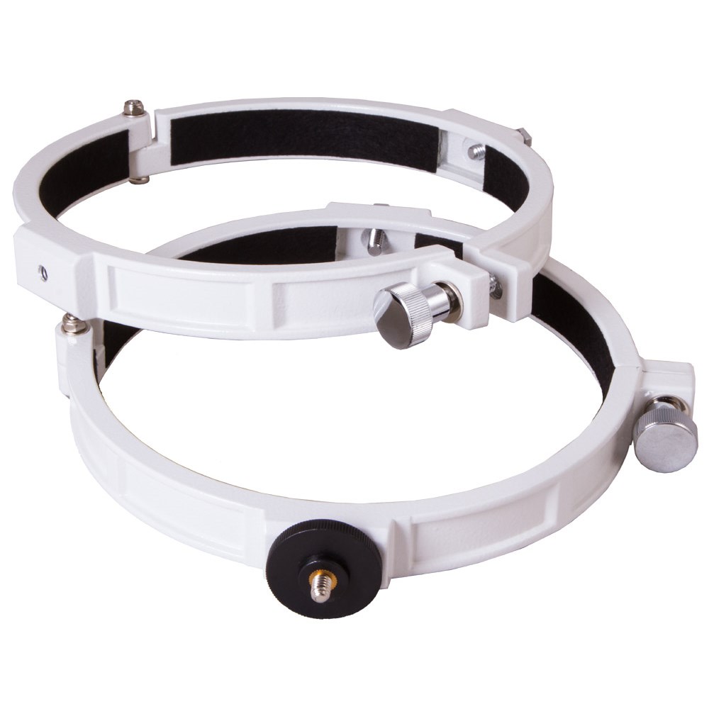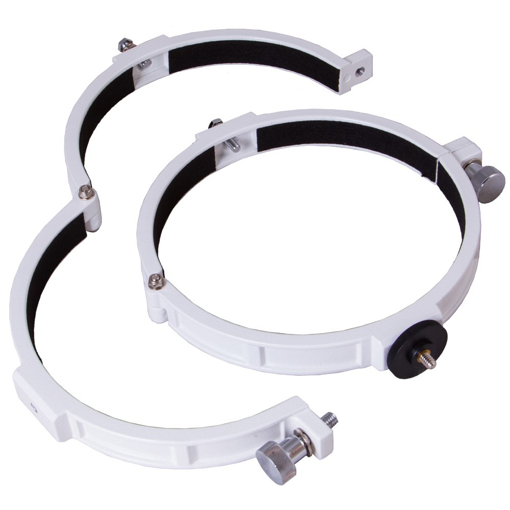 Крепежные кольца Sky-Watcher пригодятся каждому любителю астрономических наблюдений. Они нужны, чтобы зафиксировать оптическую трубу телескопа на монтировке. Силу крепления можно регулировать стопорными винтами. Эта модель крепежных колец предназначена для использования с экваториальными монтировками Sky-Watcher и азимутальной монтировкой Sky-Watcher AZ3. Диаметр колец рассчитан на рефлекторы Ньютона апертурой 150 мм. На одно из колец можно устанавливать фотооборудование при помощи стандартного крепления 1/4''.