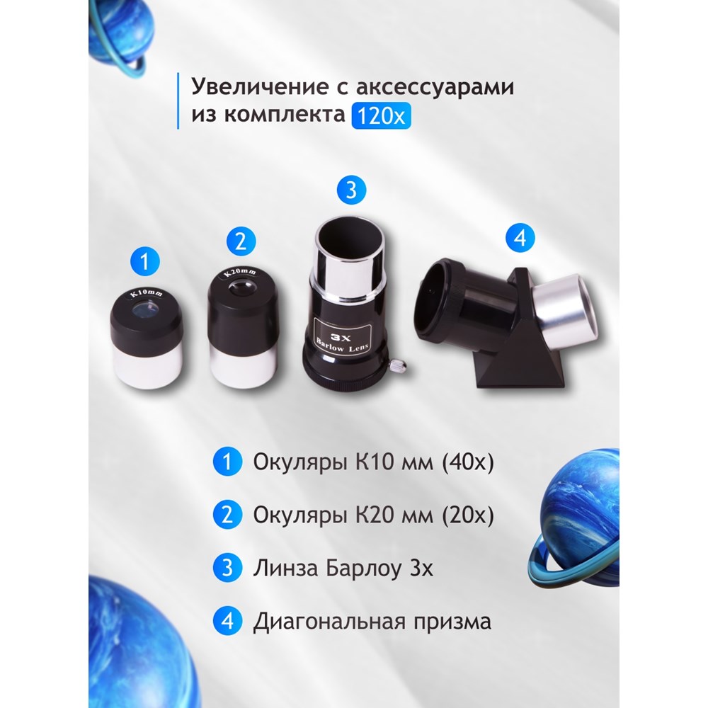 - Подходит для изучения планет, Луны и наземных объектов
