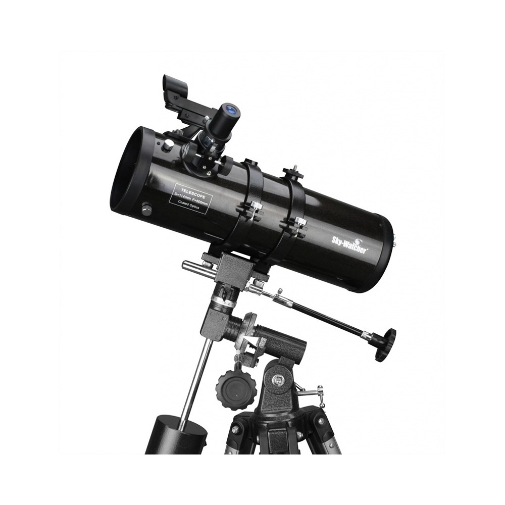 Sky-Watcher SKYHAWK BK 1145EQ1 – классический рефлектор Ньютона, возможности которого высоко оценят требовательные новички и опытные исследователи космоса. 114-миллиметровый объектив собирает много света и позволяет изучать тусклые объекты космоса, а параболическое главное зеркало убирает сферические искажения, что делает изображение более четким и хорошо читаемым. Телескоп прекрасно подходит для изучения Луны и планет Солнечной системы, но лучше всего он проявляет себя при изучении галактик, звездных скоплений и туманностей. Оптическая труба крепится к экваториальной монтировке, которая управляется двумя ручками тонких движений. Она предоставляет широкие возможности для поиска и ведения астрономических объектов по небосклону. Управление несложное и интуитивно понятное. Во время работы с монтировкой оптическая труба движется плавно, без рывков. К наблюдениям можно приступать незамедлительно, так как в комплект поставки включены необходимые оптические аксессуары: два окуляра и линза Барлоу. Благодаря такому набору наблюдения можно вести на разных увеличениях даже без приобретения дополнительных приспособлений. Телескоп установлен на алюминиевую треногу с лотком для аксессуаров. Высоту ножек треноги можно регулировать.