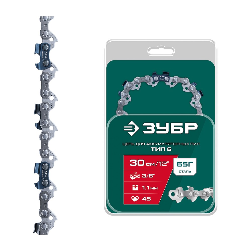 ЗУБР тип 6, 30 см, шаг 3/8″, паз 1.1 мм, 45 звеньев, цепь (71306-30)