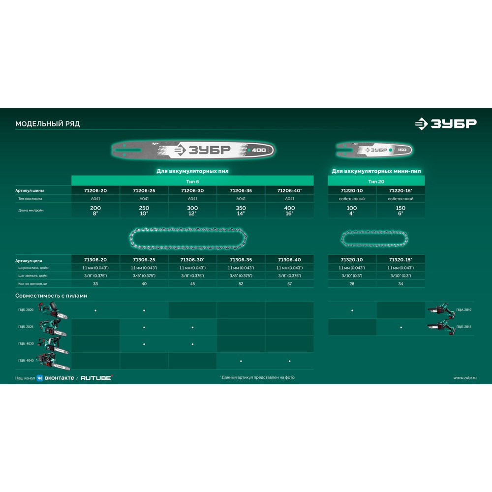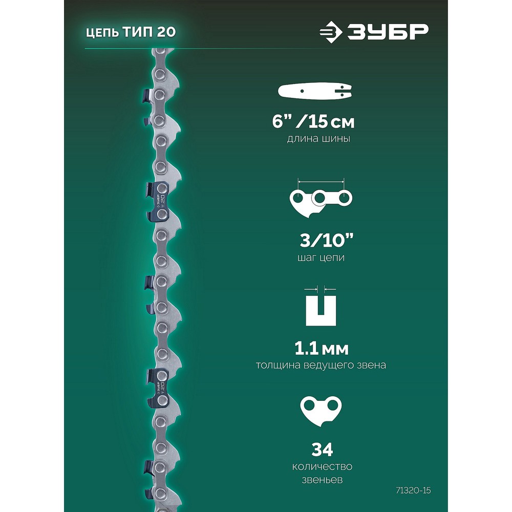 ЗУБР тип 20, 15 см, шаг 3/10″, паз 1.1 мм, 34 звеньев, цепь (71320-15)