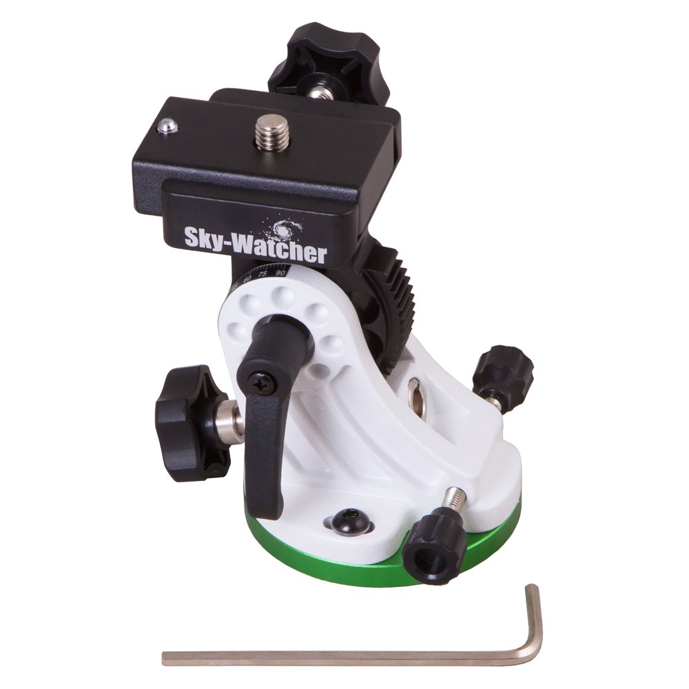 Экваториальный клин Sky-Watcher для монтировок Star Adventurer используется при астрофотографии. Он убирает «вращение поля», выравнивая полярную ось телескопа по оси вращения Земли. Благодаря этому становится возможным фотографировать космос на длинных выдержках и получать яркие и красочные снимки ночного неба. Экваториальный клин устанавливается между треногой (фотоштативом) и монтировкой. Для фиксирования последней используется съемная пластина с крепежным винтом (в комплекте). Обратите внимание: экваториальный клин не применяется для слежения за астрономическими объектами, для этой цели необходимо использовать автогид (приобретается отдельно).