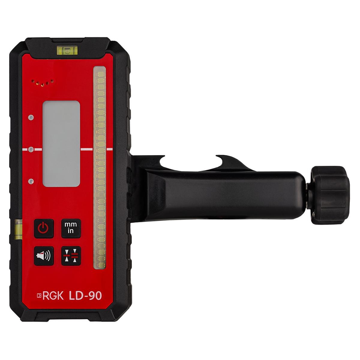 Приёмник излучения RGK LD-90 способен отслеживать положение лазерной плоскости на дистанции до 300 м в рабочей зоне 130 мм, обеспечивая расширение максимальной дальности действия лазерных уровней и нивелиров.