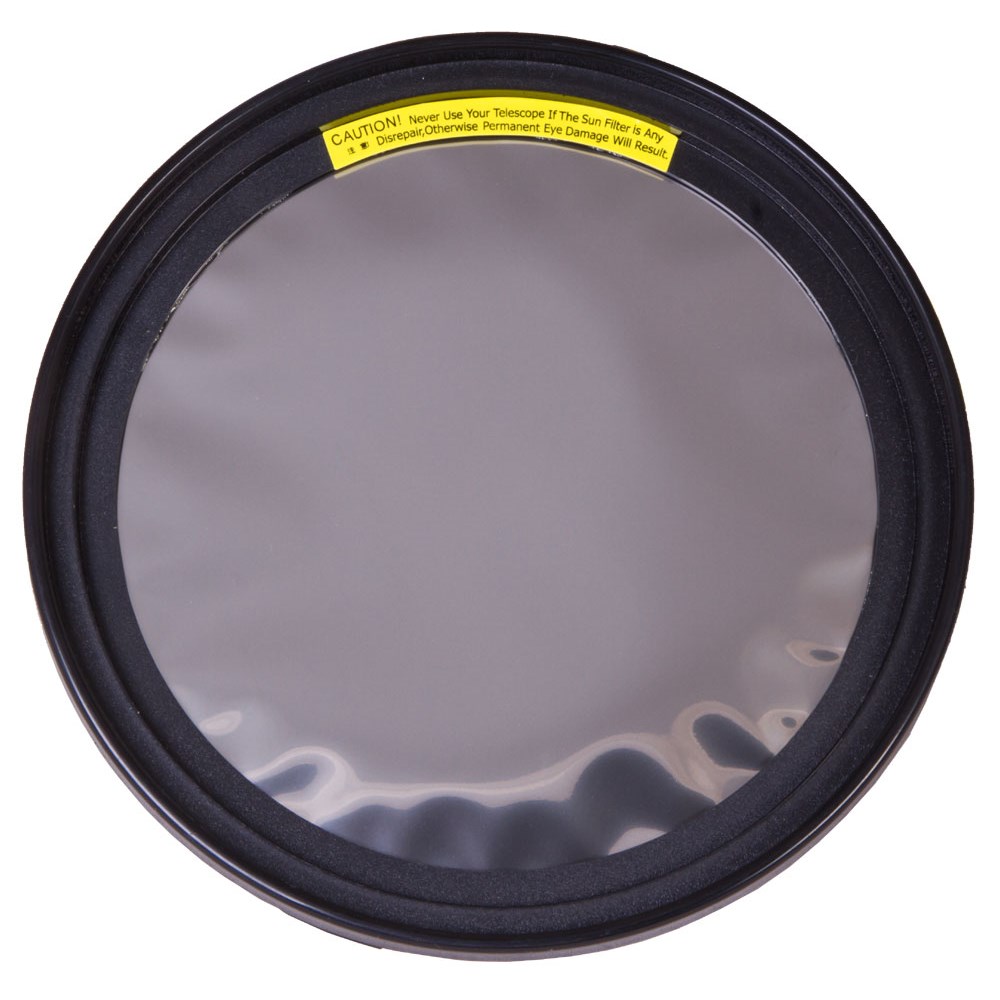 Солнечный фильтр Sky-Watcher предназначен для установки на линзовые телескопы с диаметром объектива 150 мм. Он сделан из специальной астрономической пленки и служит для защиты зрения при наблюдениях Солнца. Фильтр отсекает вредное излучение, пропуская лишь 0,001% видимого света. Цвет Солнца – нейтрально-белый. Фильтр необходим для рассматривания через телескоп солнечных пятен, грануляции, факельных полей и других процессов, протекающих на Солнце. Использование этого аксессуара обязательно – не пытайтесь наводить на солнечный диск телескоп без установленной защиты! Внимание! Никогда не смотрите на Солнце без специального фильтра. Это может необратимо повредить зрение и привести к слепоте.