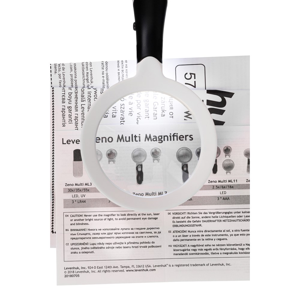 Levenhuk Zeno Multi ML13 – три классические просмотровые лупы на ручке. Набор состоит из трех отдельных луп разного диаметра, дающих разное увеличение. Каждая лупа снабжена подсветкой, состоящей из двух светодиодов. Levenhuk Zeno Multi ML13 – это незаменимая в быту и профессиональной деятельности мультилупа, прекрасно подходящая для работы с любыми мелкими предметами. С ее помощью можно изучать мелкие шрифты, читать схемы и чертежи, рассматривать детали изображений и фотографий.