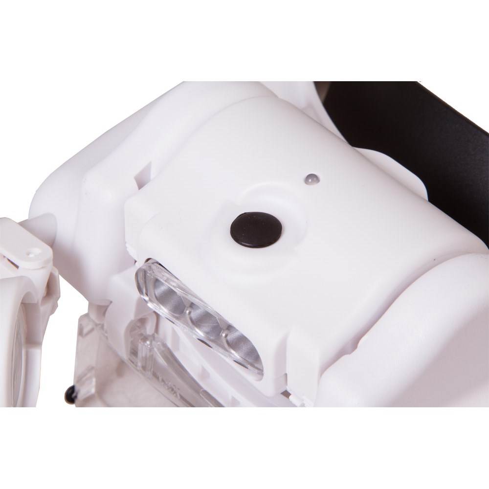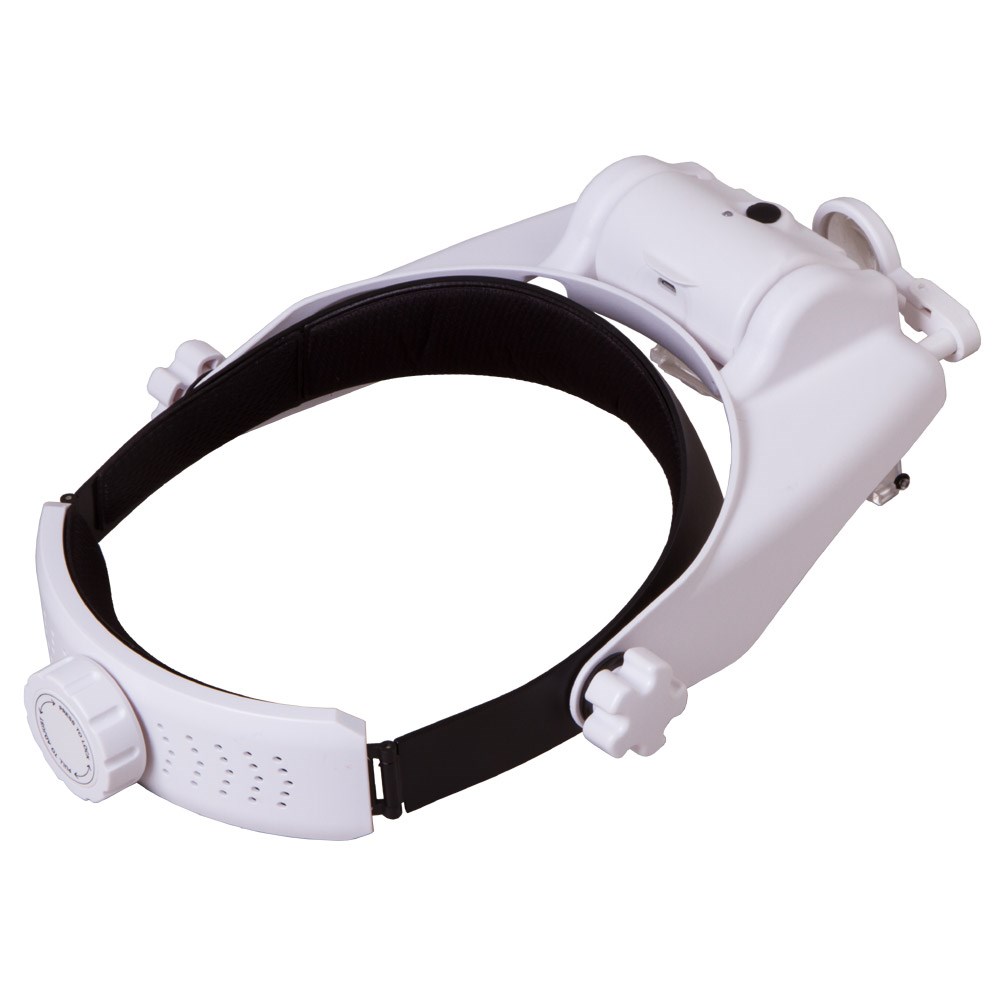 Levenhuk Zeno Vizor HR2 – налобная лупа со светодиодной подсветкой, работающей от аккумулятора. Благодаря комбинируемым линзам увеличение оптики можно отрегулировать в зависимости от задачи. Две линзы установлены прямо в корпус и рассчитаны на все поле зрения, третья предназначена только для правого глаза. При необходимости все линзы можно отвернуть в сторону, чтобы осмотреть рабочую область невооруженным глазом. Подсветка состоит из трех светодиодов, ее яркость можно регулировать нажатием на кнопку включения. Для питания используется аккумулятор. Чтобы его подзарядить, необходимо снять блок подсветки и при помощи комплектного кабеля подключить его к компьютеру или сетевому адаптеру. Лупа крепится на голове при помощи удобного крепления. Это позволяет освободить руки для работы. Рукоделие, ремонт микроэлектроники, часовые и ювелирные работы, моделизм, рисование – эта лупа пригодится и в профессиональной деятельности, и в хобби.