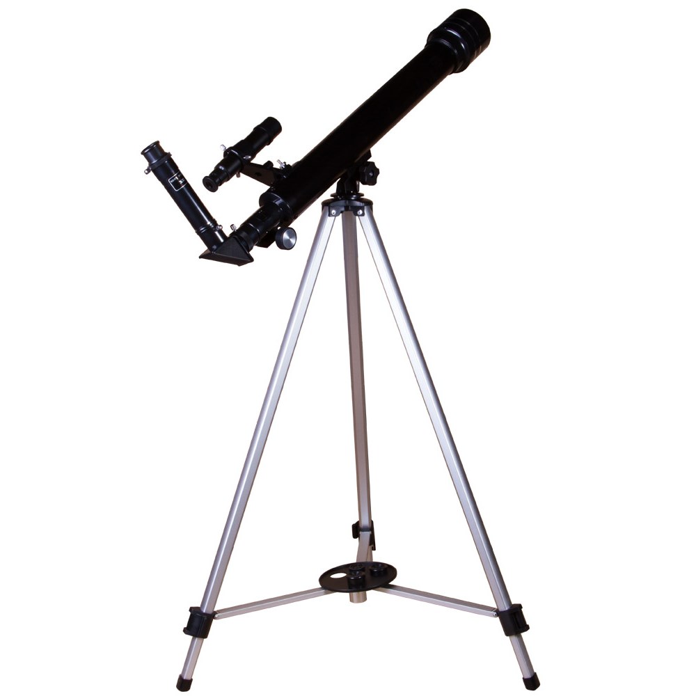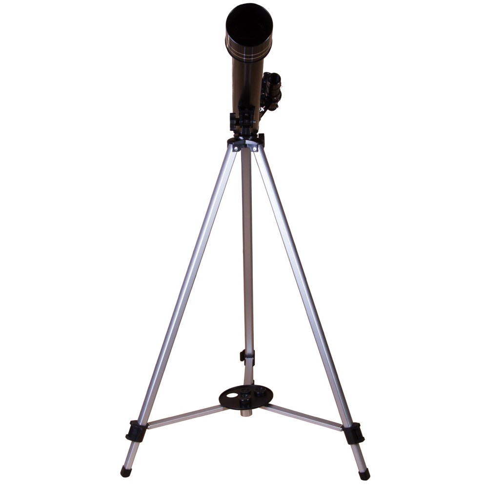 Рефрактор начального уровня Levenhuk Skyline BASE 50T – прекрасная возможность познакомить ребенка с космосом. Начинающий любитель астрономии легко справится с этим оптическим прибором и сможет быстро освоить азы управления телескопом. В Levenhuk Skyline BASE 50T можно наблюдать Луну, планеты Солнечной системы, наземные объекты. В комплект поставки уже включены оптические аксессуары, необходимые для наблюдений. В Levenhuk Skyline BASE 50T установлена стеклянная оптика с полным просветлением. Благодаря этому передаваемая картинка контрастная, яркая и четкая. Для наведения телескопа на космические и наземные объекты используется оптический искатель с 5-кратным увеличением и классическая азимутальная монтировка. Управление ручное, но простое – с телескопом легко справится даже ребенок. В комплект поставки включены окуляры, линза Барлоу и диагональное зеркало. Последнее необходимо для наземных наблюдений – оно исправляет перевернутость картинки и возвращает верх и низ изображения на привычные места. Телескоп устанавливается на прочную алюминиевую треногу, которая сохраняет устойчивость даже на неровных поверхностях. Высоту ножек треноги можно регулировать. Есть лоток для аксессуаров.