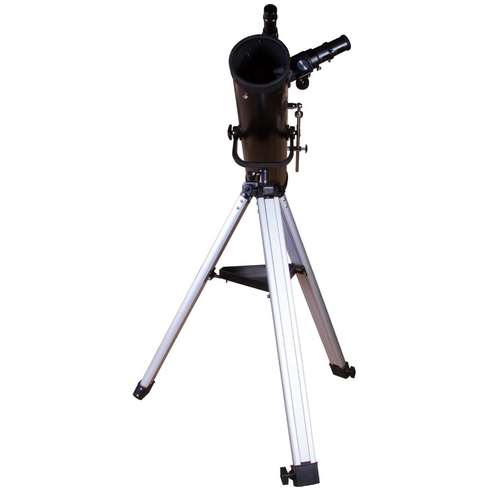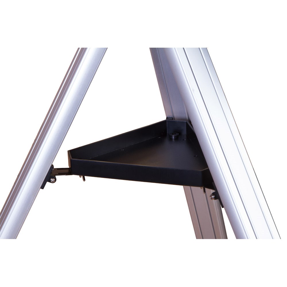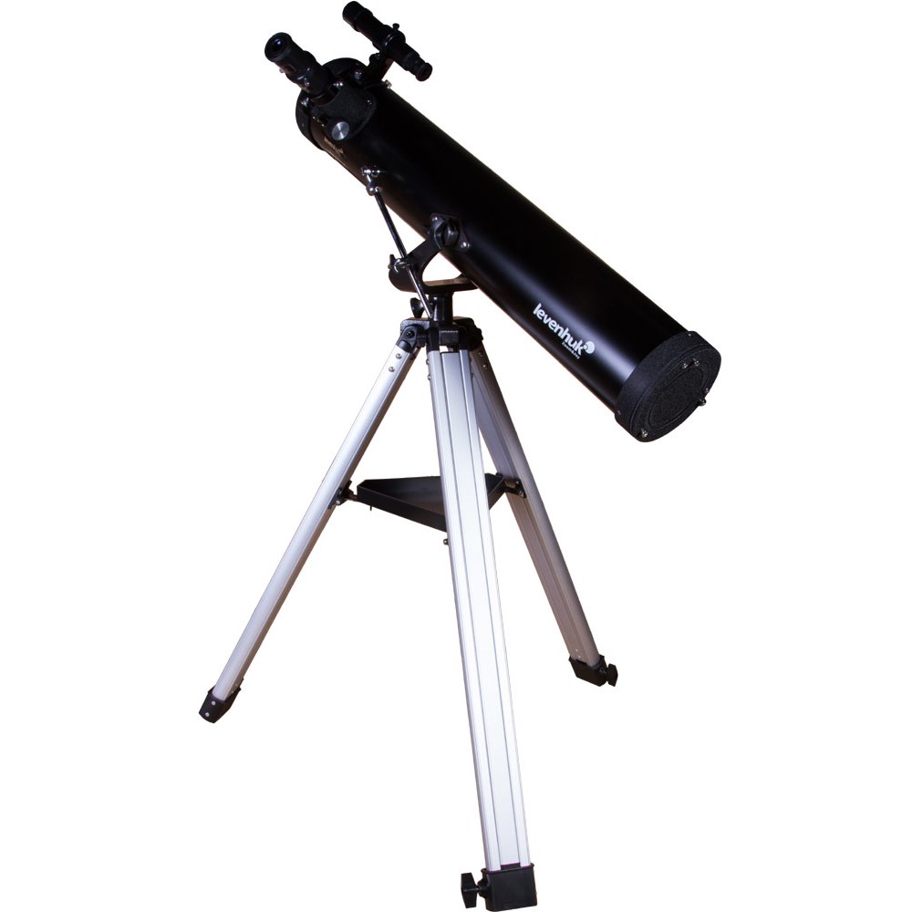 Телескоп Levenhuk Skyline BASE 80S – это 76-миллиметровый рефлектор Ньютона на азимутальной монтировке, комплектующийся всеми необходимыми оптическими аксессуарами. Телескоп отлично подходит начинающим пользователям, так как он прост в управлении и не требует приобретения дополнительных окуляров. Наблюдать в Levenhuk Skyline BASE 80S можно почти все объекты каталога Мессье – туманности, галактики, звездные скопления. Подходит он и для изучения планет Солнечной системы и Луны, но лучше всего проявляет себя именно в наблюдениях за дальним космосом. Телескоп установлен на азимутальную монтировку, которая позволяет перемещать оптическую трубу по горизонтали и по вертикали. Levenhuk Skyline BASE 80S наводится на астрономические объекты просто и быстро – с управлением легко справится даже ребенок. 6-кратный оптический искатель – дополнительная помощь при наведении. Монтировка, в свою очередь, фиксируется на алюминиевой треноге. Она стоит устойчиво и не качается даже на неровных поверхностях. Высоту ее ножек можно регулировать. Есть лоток для аксессуаров. Одна из особенностей телескопа – сбалансированный набор оптических аксессуаров в комплекте. Вместе с телескопом вы получаете два разнофокусных окуляра и двукратную линзу Барлоу.