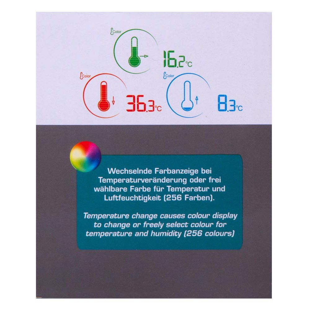 • Стильная домашняя метеостанция с цветным экраном • Цвет индикации меняется в зависимости от показаний (256 оттенков) • Крупные иконки и четкие символы, хорошо различимые с большого расстояния • Показывает время, дату, температуру, влажность воздуха и прогноз погоды • Будильник с функцией повтора Комплект поставки: • Метеостанция • Наружный датчик • Сетевой адаптер • Инструкция по эксплуатации и гарантийный талонТехнические характеристики