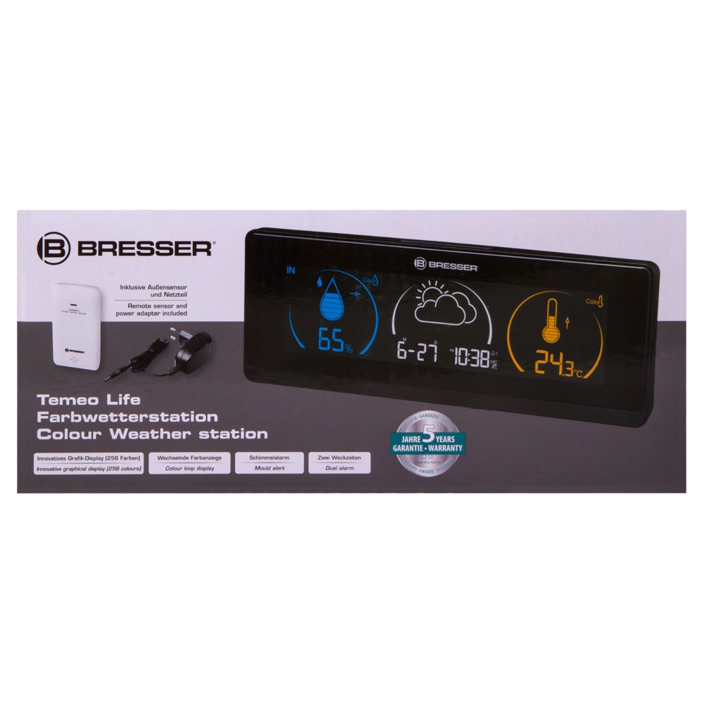 Метеостанция Bresser Temeo Life с цветным дисплеем, черная