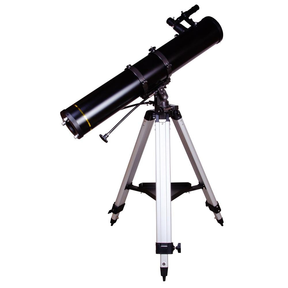 Levenhuk Skyline BASE 110S – телескоп для начинающих любителей астрономии. Лучше всего он подходит для изучения дальнего космоса: двойных звезд, звездных полей, туманностей и галактик. Объекты ближнего космоса тоже хорошо различимы – в телескоп можно увидеть кольца Сатурна, фазы Меркурия, полярные шапки на Марсе и даже Уран с Нептуном в виде нечетких пятен. Простота управления делает Levenhuk Skyline BASE 110S идеальным выбором для первого знакомства с астрономией. Модель отлично подходит и взрослым, и подросткам. Levenhuk Skyline BASE 110S – это рефлектор Ньютона со сферическим главным зеркалом. Вплоть до максимально полезного увеличения он радует хорошей прорисовкой деталей и высокой контрастностью. В комплект поставки уже включены оптические аксессуары: два разнофокусных окуляра, 6-кратный оптический искатель и линза Барлоу. Они полностью раскрывают возможности телескопа, избавляя от необходимости приобретать что-либо дополнительно. Оптическая труба установлена на классическую азимутальную монтировку. Управлять ею сможет даже пользователь, который ранее никогда не работал с оптической техникой. Монтировка крепится к устойчивой алюминиевой треноге, высоту которой можно регулировать. Есть лоток для аксессуаров.