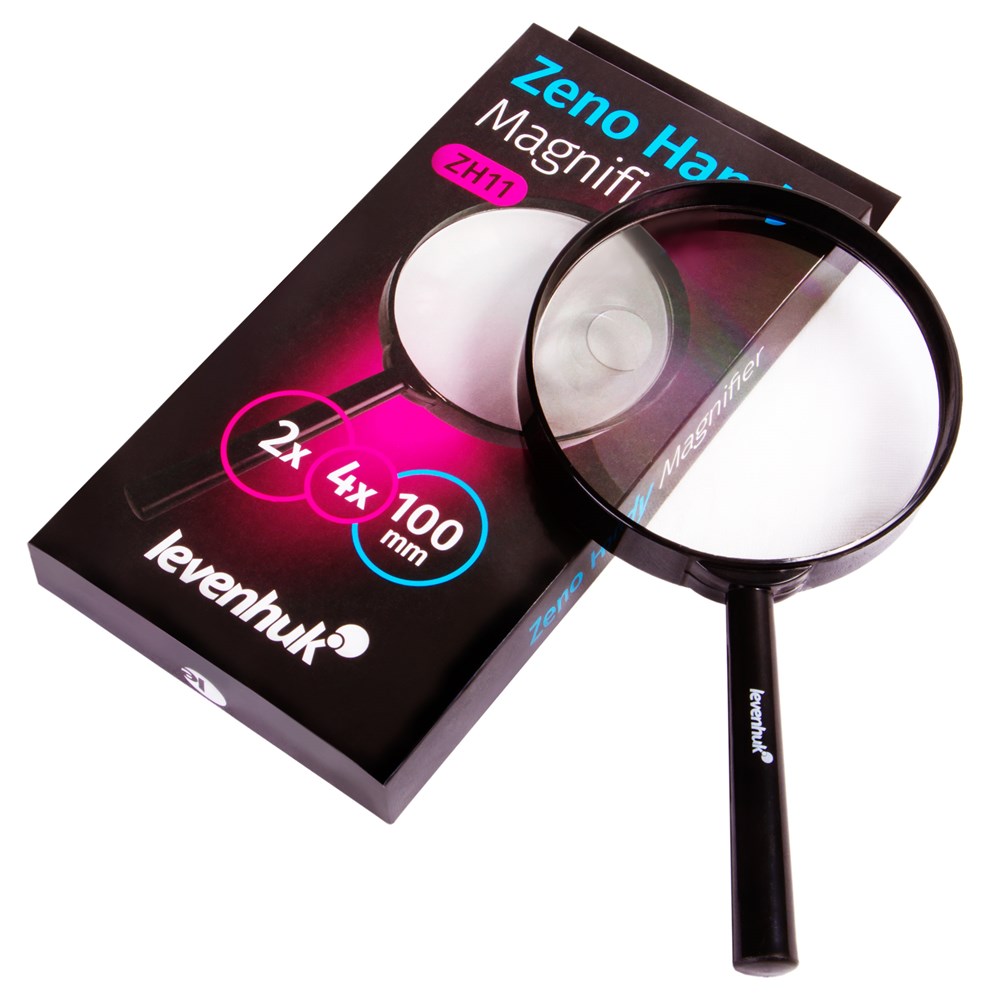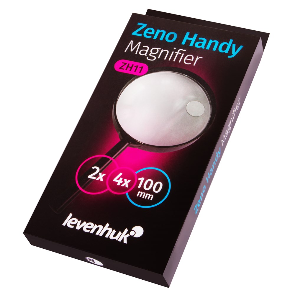 Levenhuk Zeno Handy ZH11 – это просмотровая лупа диаметром 100 мм, обеспечивающая увеличение в 2 крата. Линза сделана из пластика, но качество изображения высокое – искажения или мутность в передаваемой картинке полностью отсутствуют. В основную линзу встроена линза меньшего диаметра (20 мм). Она дает увеличение в 4 крата, что позволяет детально изучать мелкие объекты. Лупа Levenhuk Zeno Handy ZH11 сделана из пластика, помещена в тонкую оправу и снабжена эргономичной ручкой. Она станет идеальным помощником в хобби, чтении, рукоделии или выполнении каждодневных дел по дому.