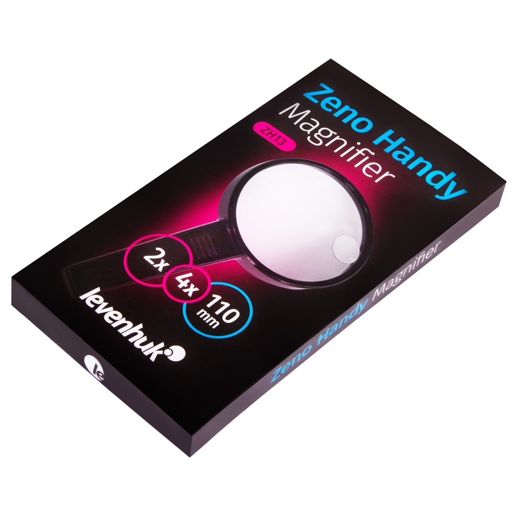 Levenhuk Zeno Handy ZH13 – лупа с линзой большого диаметра (110 мм), которая дает 2-кратное увеличение. В ней расположена малая линза диаметром 25 мм, которая дает большее увеличение – 4 крата. Лупа отлично подходит для рассматривания мелких объектов, чтения текста и изучения небольших деталей на поверхностях предметов. Все элементы лупы сделаны из пластика. Эргономичная ручка надежно лежит в руке и позволяет наклонять лупу практически под любым углом. Лупа легкая, надежная, передает четкое и ясное изображение по всему полю зрения.