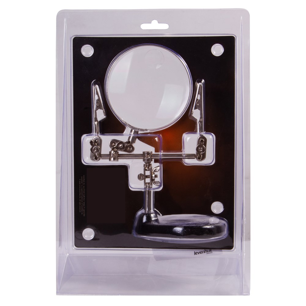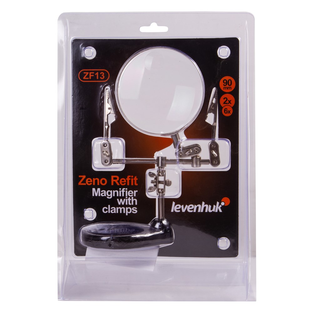 Штативная лупа Levenhuk Zeno Refit ZF13 – бифокальный оптический инструмент для ювелиров, часовых мастеров и всех, кто работает с мелкими деталями. Благодаря наличию держателей она позволяет надежно зафиксировать электронную плату для пайки или фанерные детали для покраски. При использовании этого прибора обе руки мастера остаются свободными. Лупа дает два увеличения: двукратное на большом диаметре и шестикратное на малом. Линза выполнена из оптического пластика и помещена в надежную металлическую оправу. В процессе работы линзу можно наклонять под разными углами и подбирать максимально комфортное расстояние до объекта. Металлические держатели оснащены зажимами типа «крокодил». В основании предусмотрен лоток для мелочей – гайки, винты и мелкие детали всегда будут в одном месте и не потеряются.