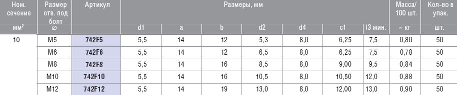 Медные угловые трубчатые кабельные наконечники, угол 90° (серия F), M10 / 10 мм KLAUKE 742F10