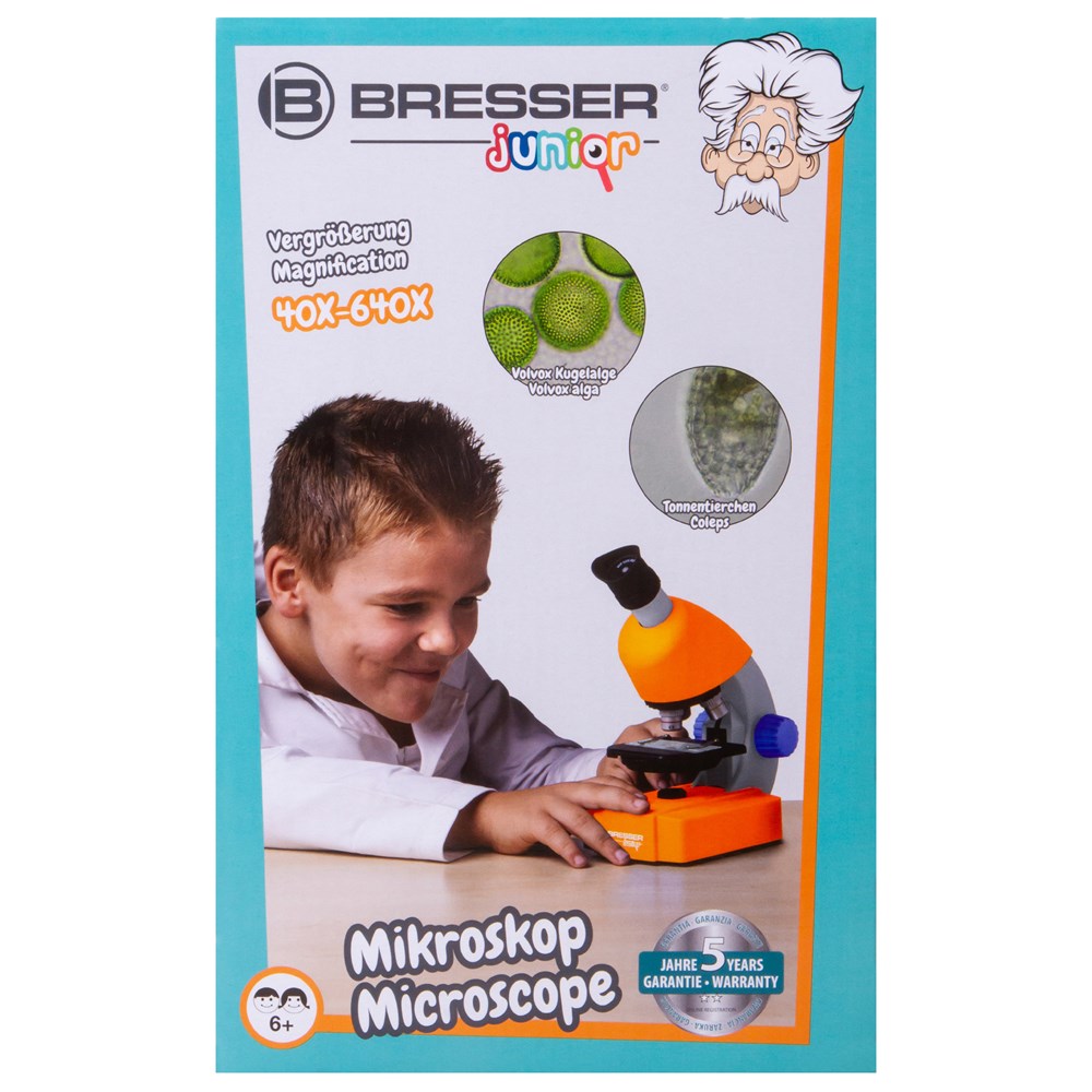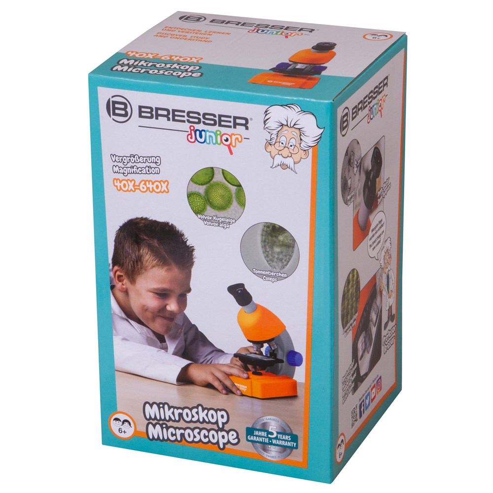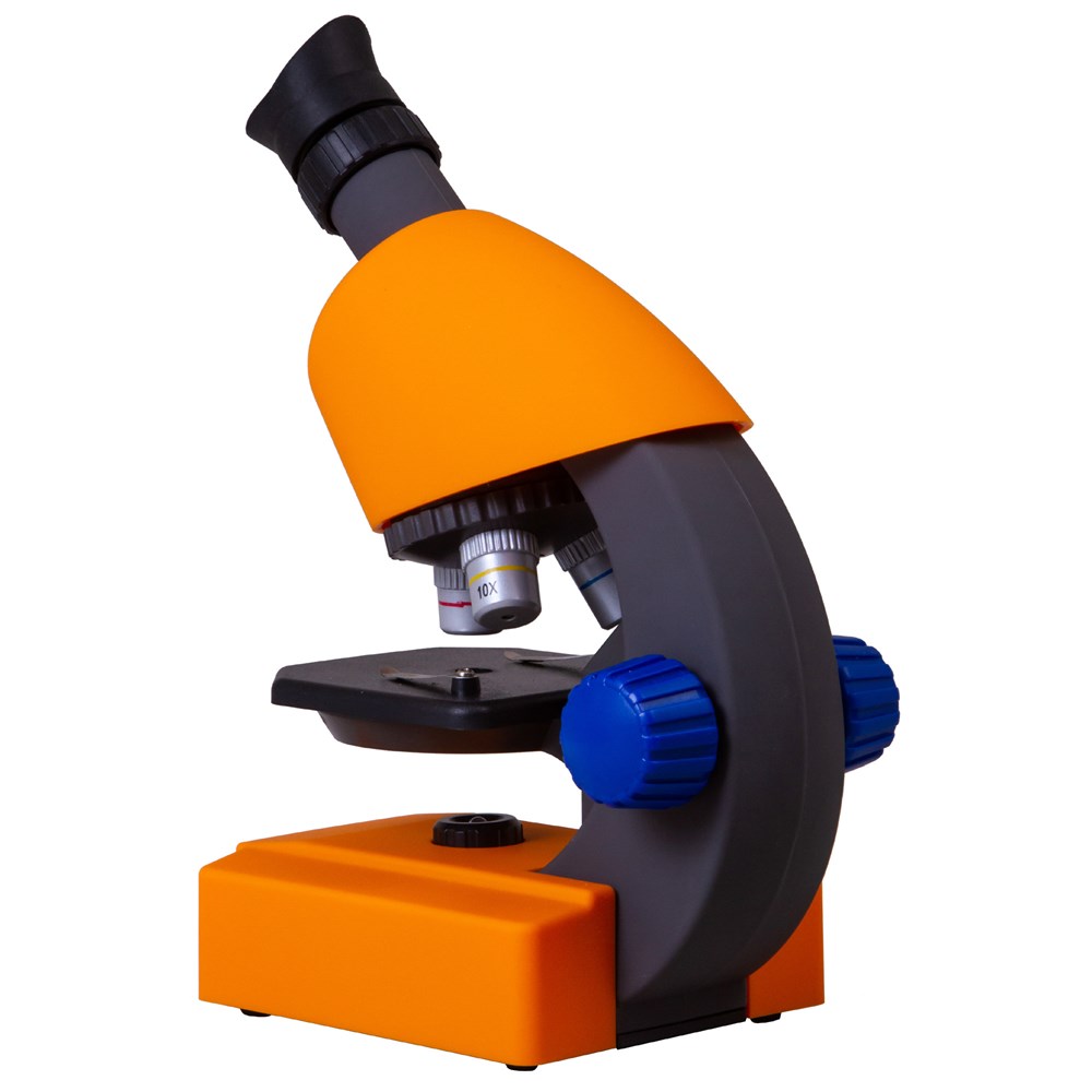 Детский микроскоп Bresser Junior 40–640x интересен не только своим ярким внешним видом, но и оптическими возможностями. Это серьезный увеличительный прибор, который позволит юному исследователю познакомиться с загадочным микромиром. Микроскоп прекрасно подходит для изучения прозрачных биологических образцов и проведения несложных научных опытов. Он поможет и в учебе, и в самостоятельном изучении микробиологии. В микроскопе установлено трехгнездное револьверное устройство с объективами разной кратности и двухпозиционный окуляр. Диапазон увеличений составляет от 40 до 640 крат. Приближение оптики можно менять прямо во время наблюдений. Для более точной настройки резкости используются ручки грубой фокусировки – они расположены по обеим сторонам корпуса. Микропрепараты фиксируются на предметном столике при помощи классических зажимов. Для освещения используется светодиодная подсветка, она расположена в нижней части микроскопа. Яркость подсветки регулируется, для дополнительной настройки освещенности можно вращать диск с диафрагмами. Питается подсветка от стандартных батареек, поэтому микроскоп удобно использовать вне дома. Микроскоп Bresser Junior 40–640x – прекрасный выбор для первых наблюдений и освоения азов микробиологии.