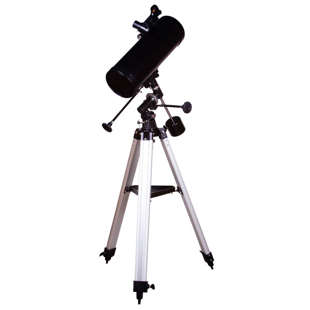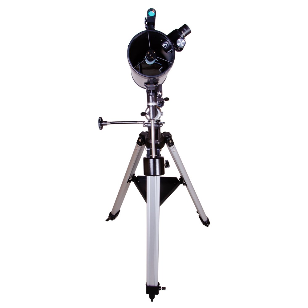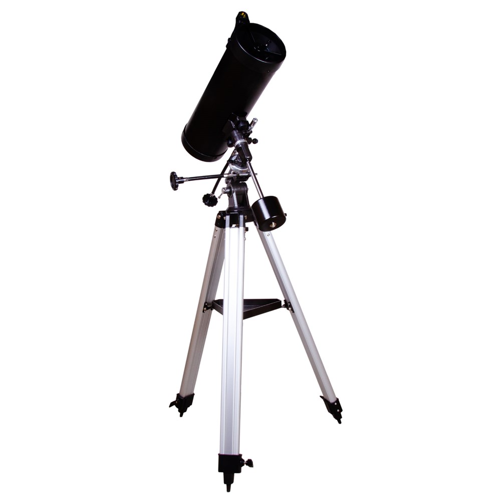 Levenhuk Skyline PLUS 115S – короткофокусный рефлектор Ньютона, который создан для наблюдений за галактиками, туманностями, звездными скоплениями и другими объектами дальнего космоса. Он достаточно небольшой, собирает много света и хорошо работает даже по тусклым звездам. Этот телескоп станет отличным выбором для начинающего астронома, который хочется сосредоточиться на исследовании удаленных уголков Вселенной. У телескопа прекрасная базовая комплектация. Два разнофокусных окуляра идеально подходят для изучения протяженных объектов. Они дают небольшое увеличение и позволяют охватывать одним взглядом широкие пространства. Но при необходимости увеличение телескопа можно «разогнать» до 228 крат – правда, потребуется приобрести дополнительные оптические аксессуары. Для управления оптической трубой телескопа используется классическая экваториальная монтировка. С помощью двух ручек тонких движений можно точно и быстро навести телескоп на нужную область неба и проследить за движением астрономического объекта по небосклону. Телескоп комплектуется алюминиевой треногой с лотком для аксессуаров. Высоту ножек треноги можно регулировать.