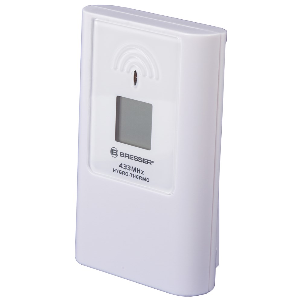 Перед вами внешний датчик Bresser, который можно использовать с метеостанциями Bresser Temeo MC/TB и TemeoTrend. Он предназначен для измерения температуры и влажности воздуха и может устанавливаться на расстоянии до 50 метров от основного модуля. Датчик передает данные по радиоканалу, также показания выводятся на встроенный экран. Для работы требуются стандартные батарейки. Возможен настольный или настенный монтаж.