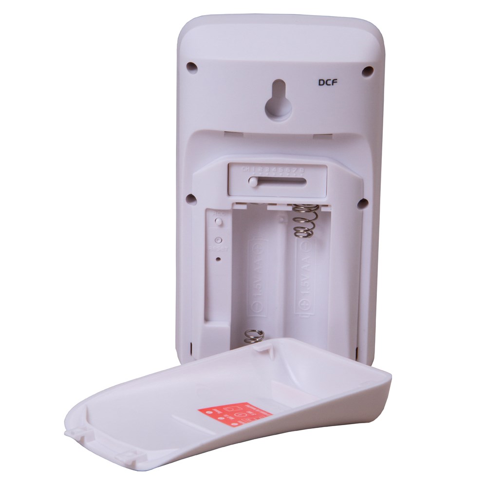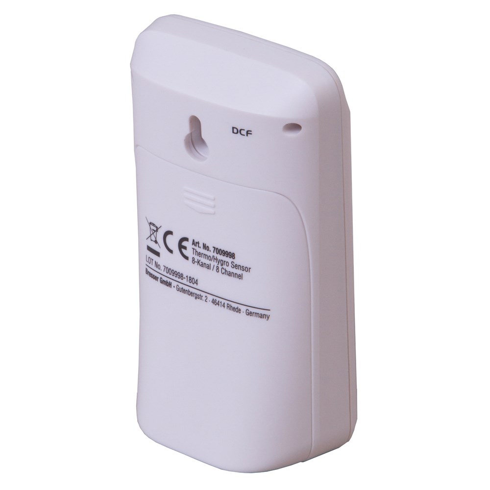Этот внешний датчик можно использовать с метеостанциями Bresser Temeo Life и Meteo THBM/TP. Он предназначен для измерения влажности воздуха и температуры и может передавать данные по радиоканалу на расстояние до 30 метров. У датчика нет собственного экрана, все измерения он выводит прямо на экран подключенной метеостанции. Переключатель каналов находится под крышкой батарейного отсека. Всего доступно 8 каналов передачи. Датчик можно крепить на стену или ставить на стол или подоконник. Для работы прибора требуются батарейки (нет в комплекте).