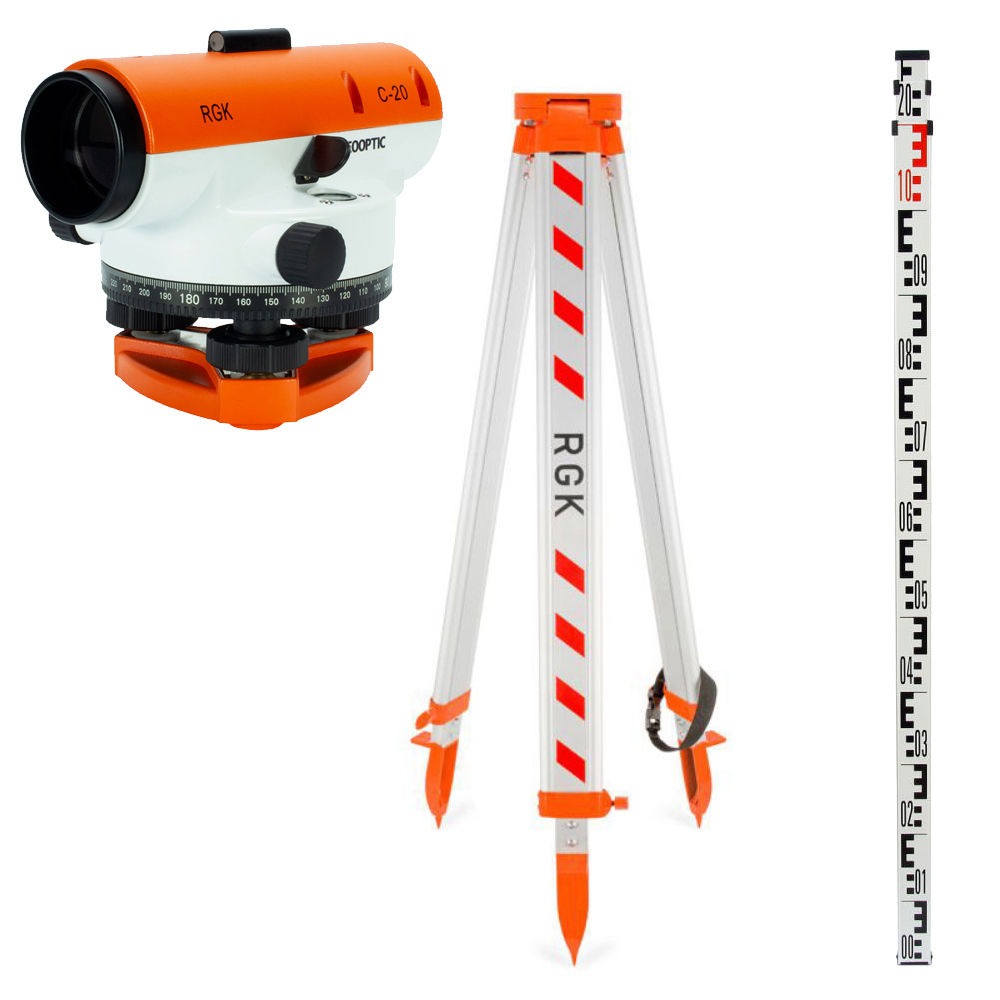Комплект оптический нивелир RGK C-20 + штатив S6-N + рейка AMO S5