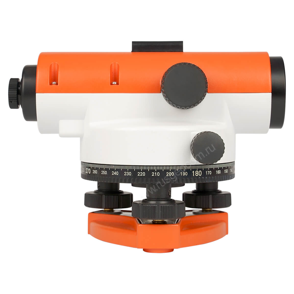 - Устойчивый штатив с плоской площадкой позволяет установить нивелир на высоте до 170. В сложенном состоянии тренога не занимает много места и стягивается ремнем, что делает более удобной перевозку комплекта нивелира со штативом и рейкой в салоне автомобиля или общественного транспорта.